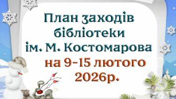 Увага! План заходів бібліотеки ім. М. Костомарова на період з 9 по 15 лютого 2026р.