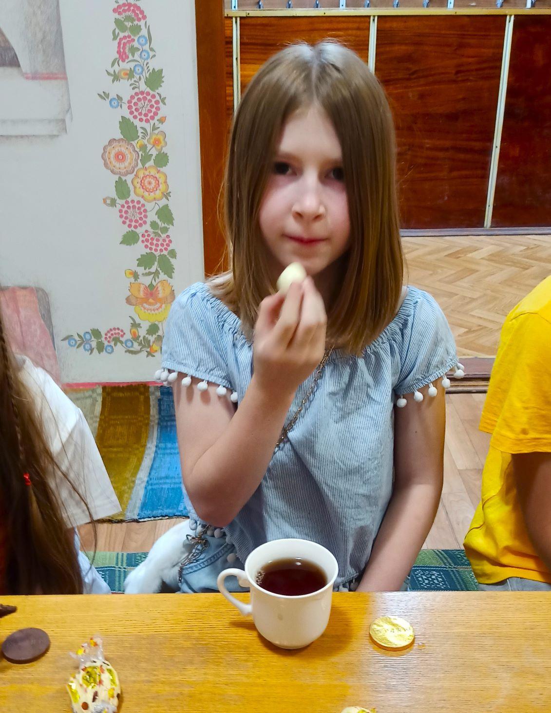 відчули на запах та дотик складники шоколаду: масло какао та какао порошок, а ще, розв’язали цікавий кросворд і швидко знайшли відповіді на питання вікторини. А хіба можна так багато говорити про шоколад не скуштувавши його? 😇 Тому ми з читачами радо дегустували різноманітні види шоколаду із запашним чаєм.