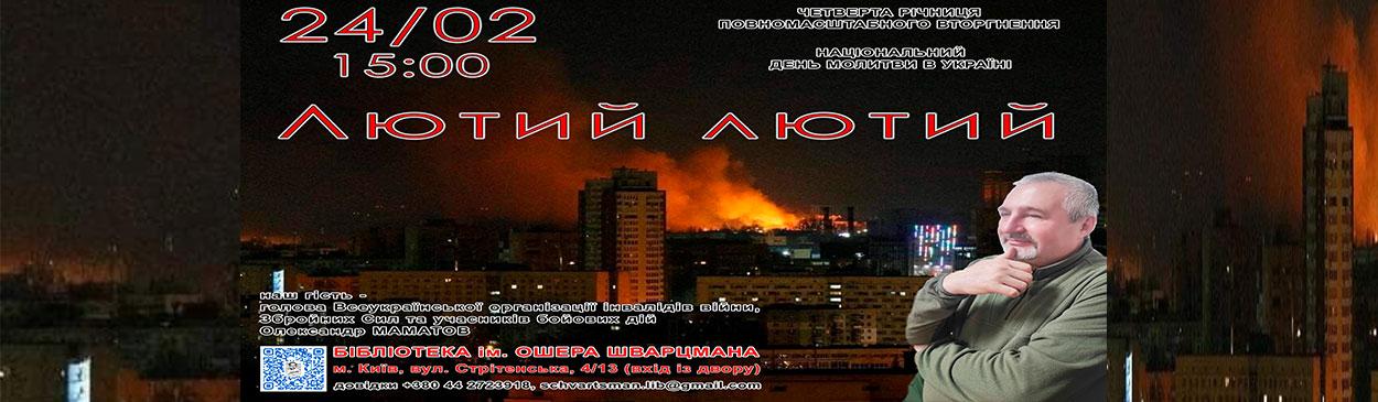 Анонс📢! Зустріч «Лютий лютий» в бібліотеці ім. О. Шварцмана до четвертої річниці повномасштабного вторгнення