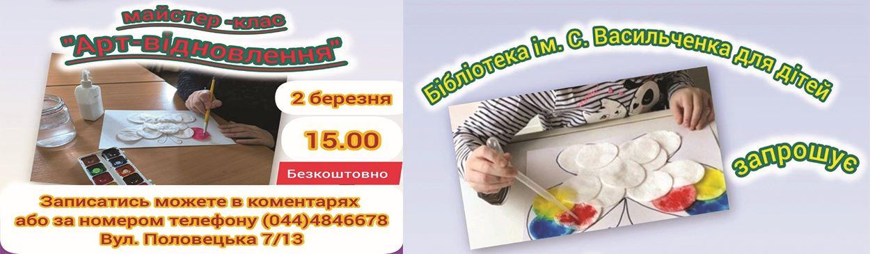 Анонс📢! Бібліотека ім. С. Васильченка для дітей запрошує на творчу арт-терапію