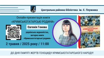 Анонс📢! Онлайн-зустріч з Євгенією Геновою, авторкою книги «Кримськотатарські родини» в ЦРБ ім. Є. Плужника