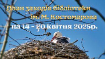 Увага! План заходів бібліотеки ім. М. Костомарова на період з 14 по 20 квітня 2025 р.