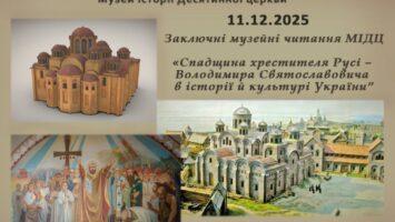 Бібліотека імені Володимира Винниченка та Музей історії Десятинної церкви запрошує на Музейні читання. Початок: 11.12.2025 об 11:00 в бібліотеці ім. В. Винниченка за адресою: м. Київ, вул. Кудрявська, 2