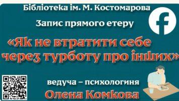 Бібліотека ім. І. Котляревського запрошує на Тренінг «Як спілкуватись з військовослужбовцями» з психологом, арт-терапевткою Оленою Комковою. Ми поговоримо про те, що змінює війна в психіці людини, як бойовий досвід впливає на емоції, тіло, реакції та Докладніше