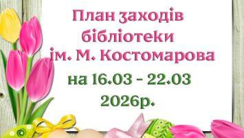 Увага! План заходів бібліотеки ім. М. Костомарова на період з 16.03 по 22.03.2026 р.