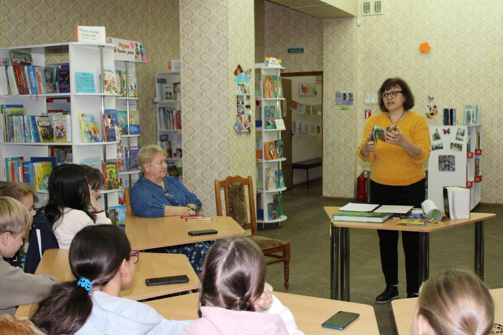 Бібліотекарка відділу обслуговування ознайомила присутніх з книжковими виставками та новинками в бібліотеці.