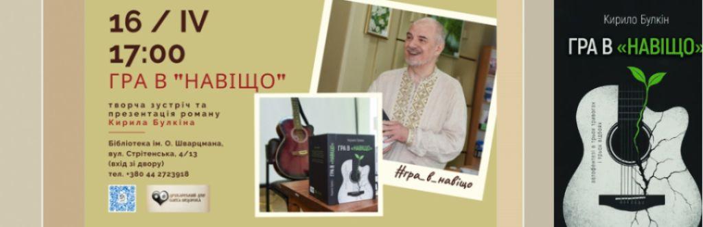 Анонс📢! Творчий вечір і презентація книги Кирила Булкіна “Гра в “Навіщо” в бібліотеці ім. О. Шварцмана