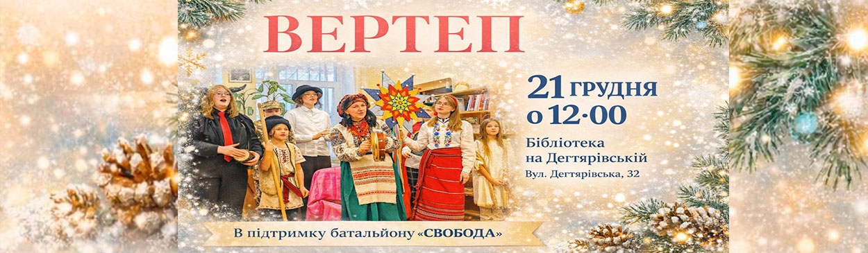 Яке Різдво без Вертепу і коляди? І який Вертеп – без влучної сатири на сьогодення і щирого гумору? Бібліотека на Дегтярівській запрошує на яскравий Вертеп від пластунів Київської та Бучанської станиці і студентів Києво-Могилянської академії. Докладніше