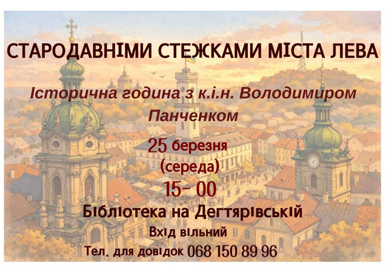 Анонс📢! Історична година з Володимиром Панченком «Стародавніми стежками міста Лева» в Бібліотеці на Дегтярівській