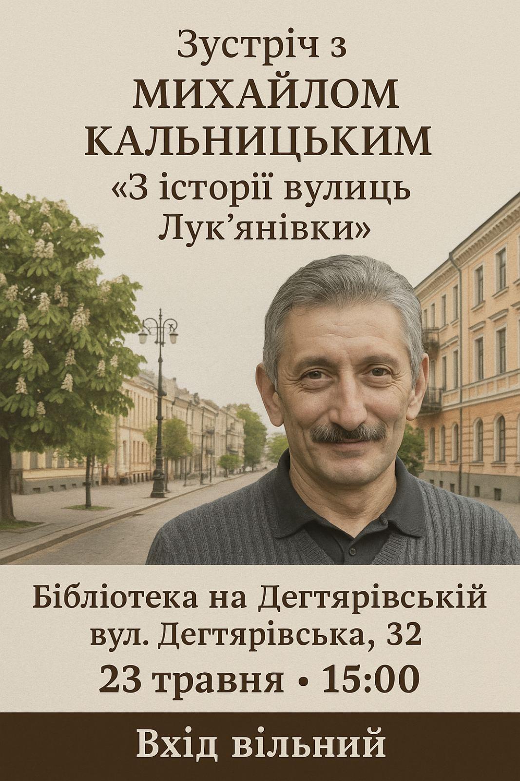 Анонс📢! Краєзнавча зустріч «З історії вулиць Лук’янівки» з відомим києвознавцем Михайлом Кальницьким в Бібліотеці на Дегтярівській