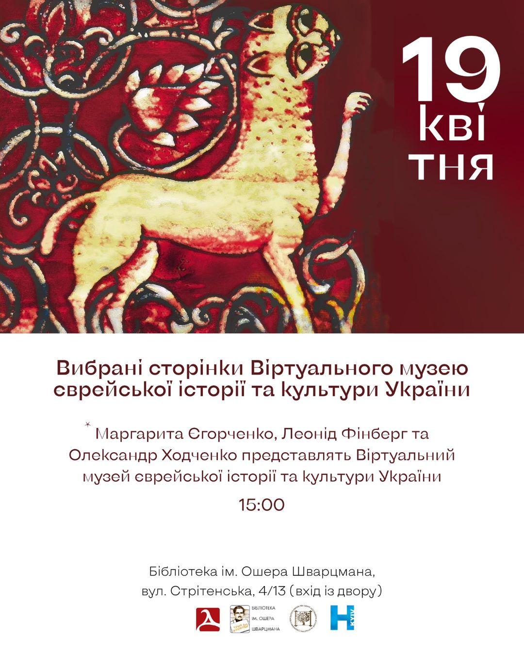 Гостями події стануть Маргарита Єгорченко, Леонід Фінберг та Олександр Ходченко, які представлять Віртуальний музей єврейської історії та культури України. Будуть розглянуті окремі зали Музею, присвячені, зокрема, таким темам: Світ Шолом-Алейхема, Єврейський театр, Штетли та синагоги в Україні, Єврейське кіно та інші.