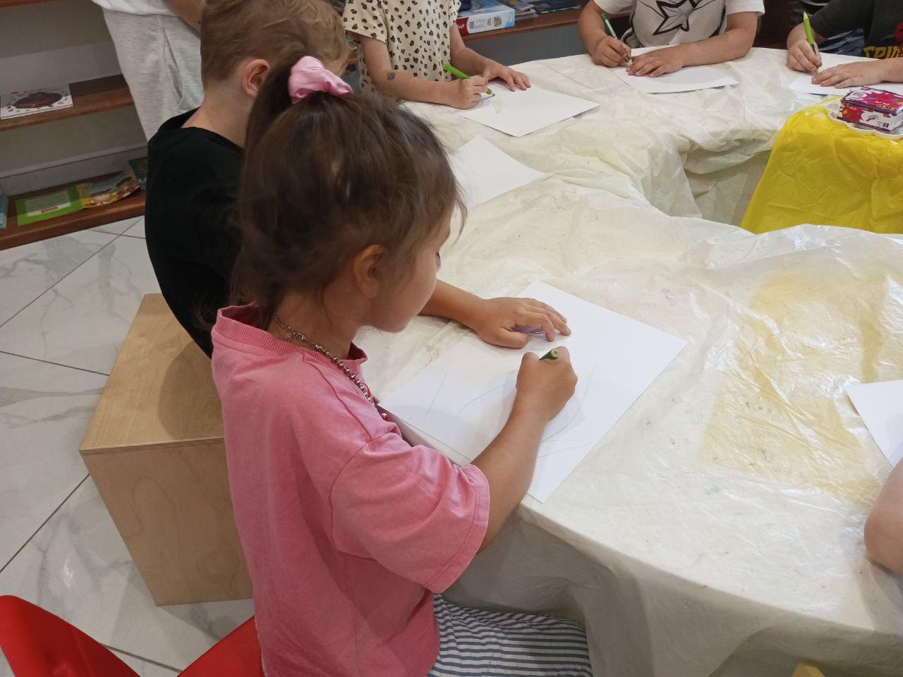Артмайстерку провела художниця бібліотеки Ганна Колтукова, яка з любов’ю поділилася з малечею секретами цієї чарівної техніки.