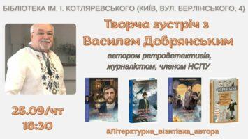 Анонс📢! Творча зустріч з письменником Василем Добрянським в бібліотеці ім. І. Котляревського