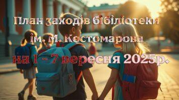 Увага! План заходів бібліотеки ім. М. Костомарова на період з 1 по 7 вересня  2025 р.