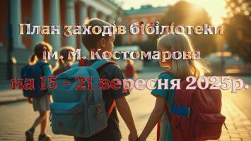 Увага! План заходів бібліотеки ім. М. Костомарова на період з 15 по 21 вересня 2025 р.