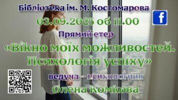 Анонс📢! Прямий етер «Вікно моїх можливостей. Психологія успіху» з психологинею бібліотеки ім. М. Костомарова