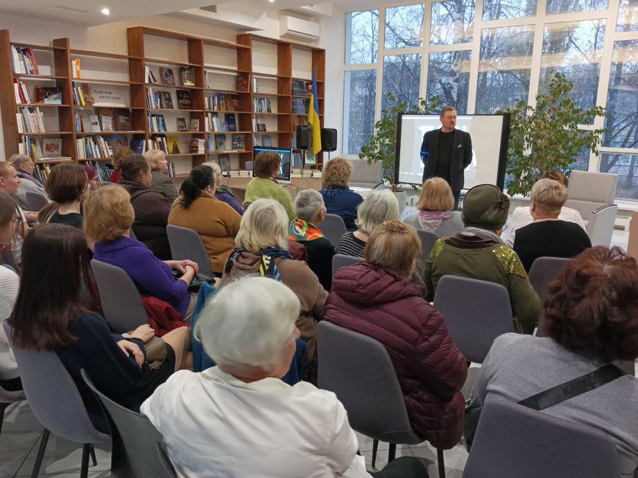 Фотогалерея бібліотеки ім. М. Костомарова Курси комп’ютерної грамотності для дорослих «Курсор на мрію» Гурток малювання для дорослих «Кольорова мрія» Майстер-клас «Різдвяні сувеніри: ялинка-оригамі» Дитяча ігрова кімната «Чомусик» Курс по вивченню смартфонів «Зі смартфоном на «ти»: 5 теплих зустрічей в бібліотеці» Творча зустріч з письменником Андрієм Кокотюхою Майстер-клас «Будинок моєї мрії» від МОН ООН в Україні для учнів ЗОШ №27 Рандеву з поезією «Все, що душа довірила словам спільно з учнями ДМШ №11 та ЗОШ №27 Бібліотека - штаб допомоги після ворожих обстрілів