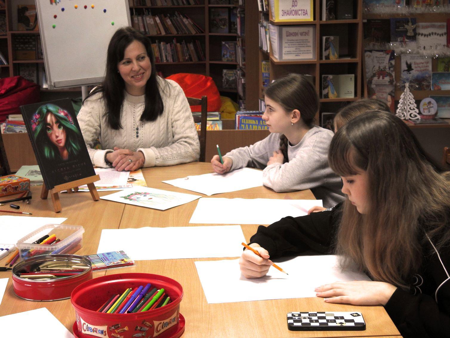 Гурток малювання «Пензлик у світі казок». Творче заняття присвячене 155-річчю від дня народження Лесі Українки «Мавка – берегиня лісу» в бібліотеці 122 для дітей