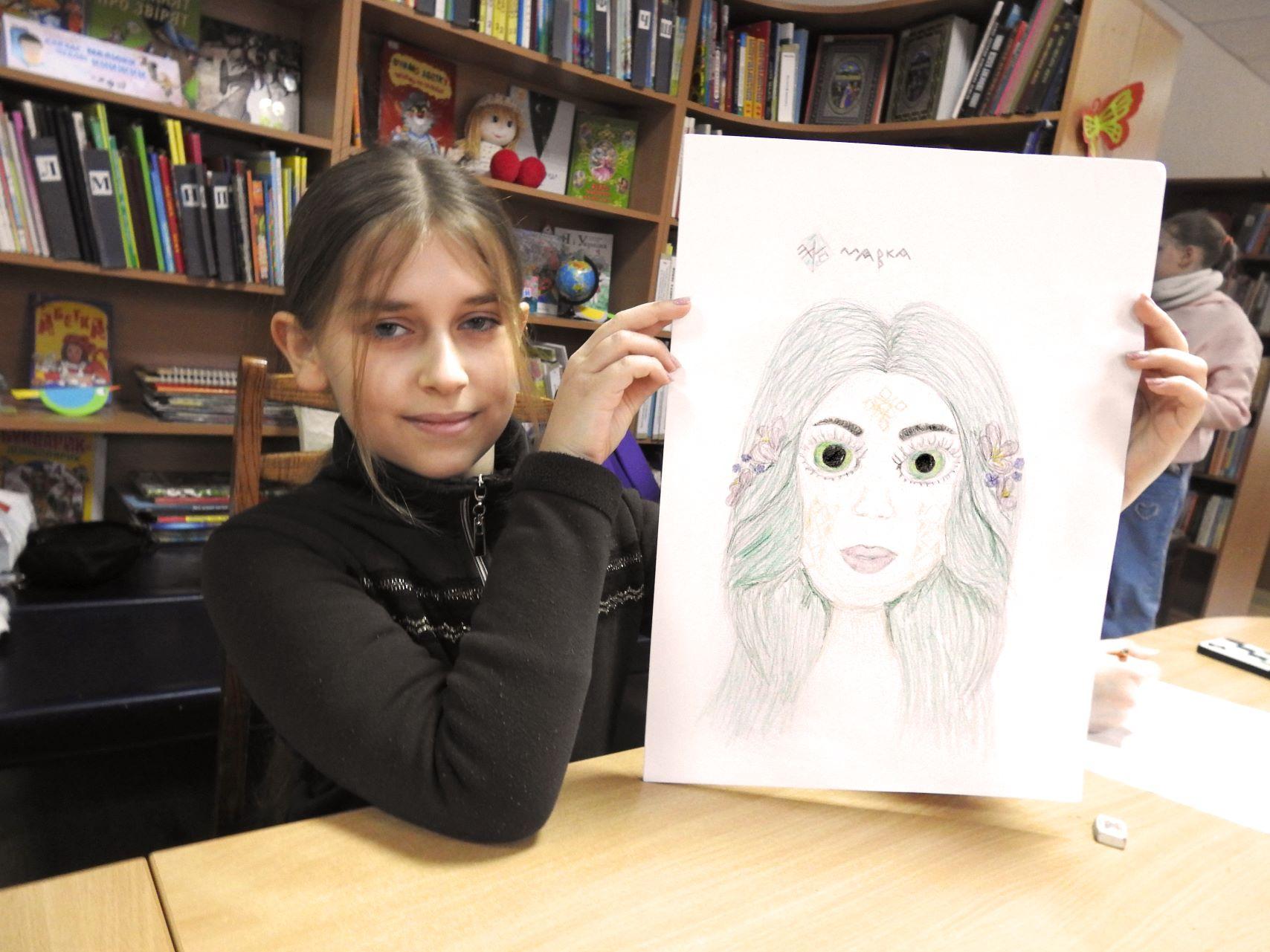Юні художниці вчилися малювати портрет Мавки з великими очима та вінком із калини або лісових квітів, а дехто додавав магічні візерунки на обличчі.