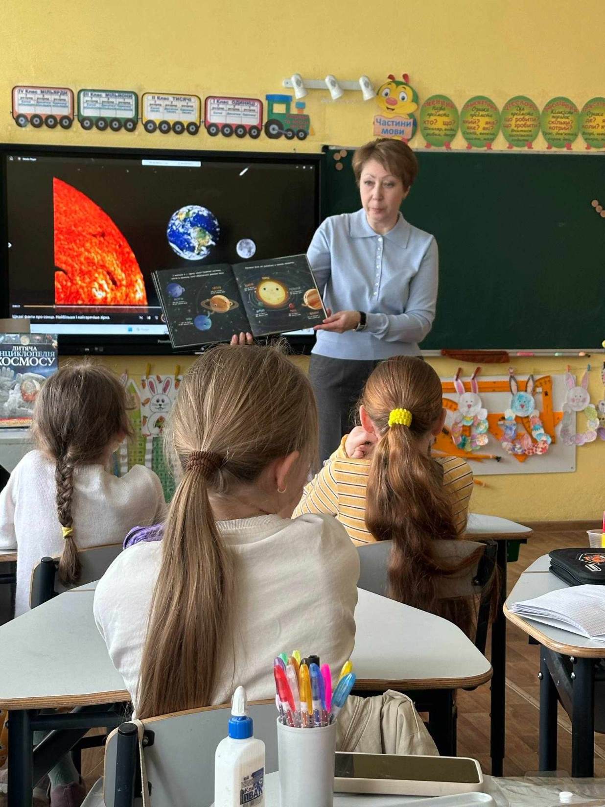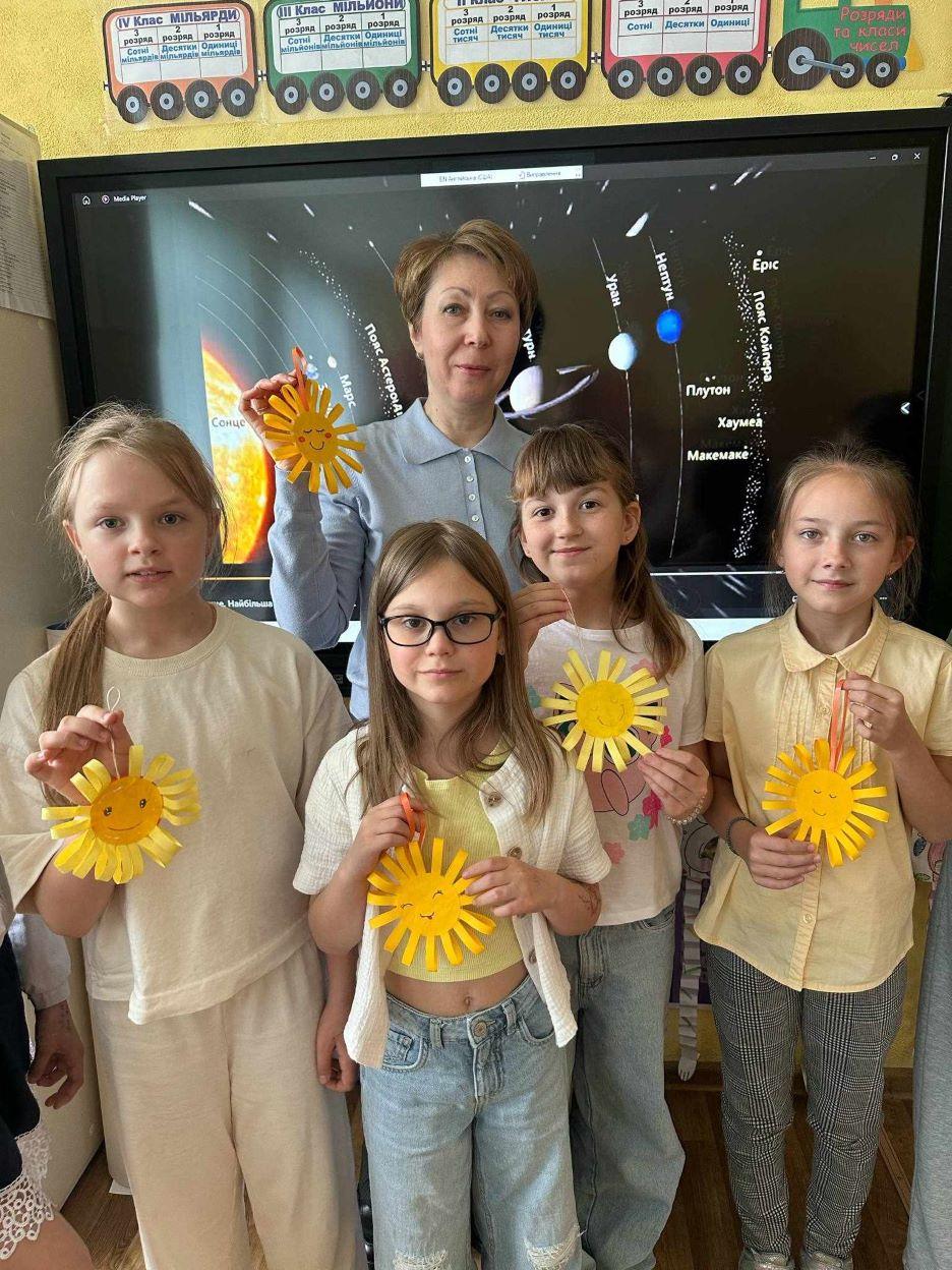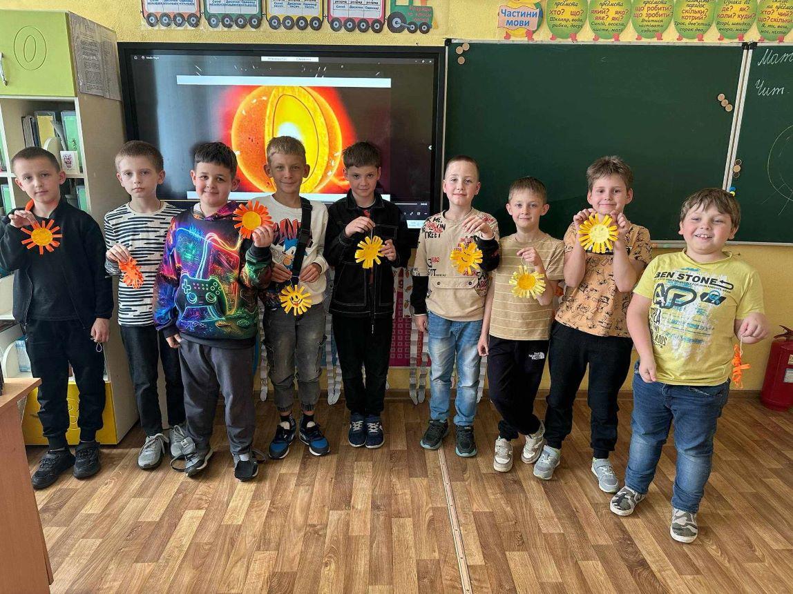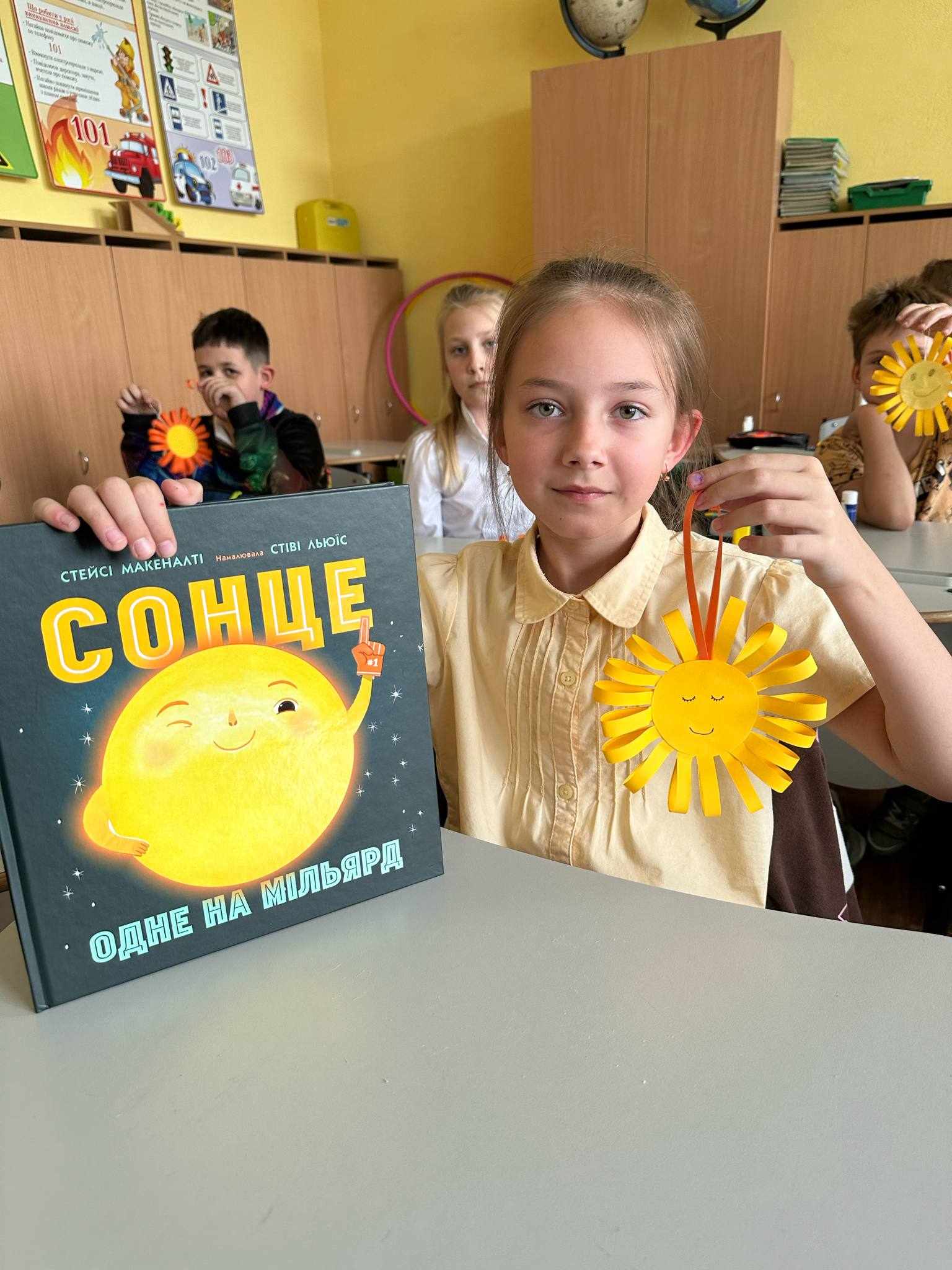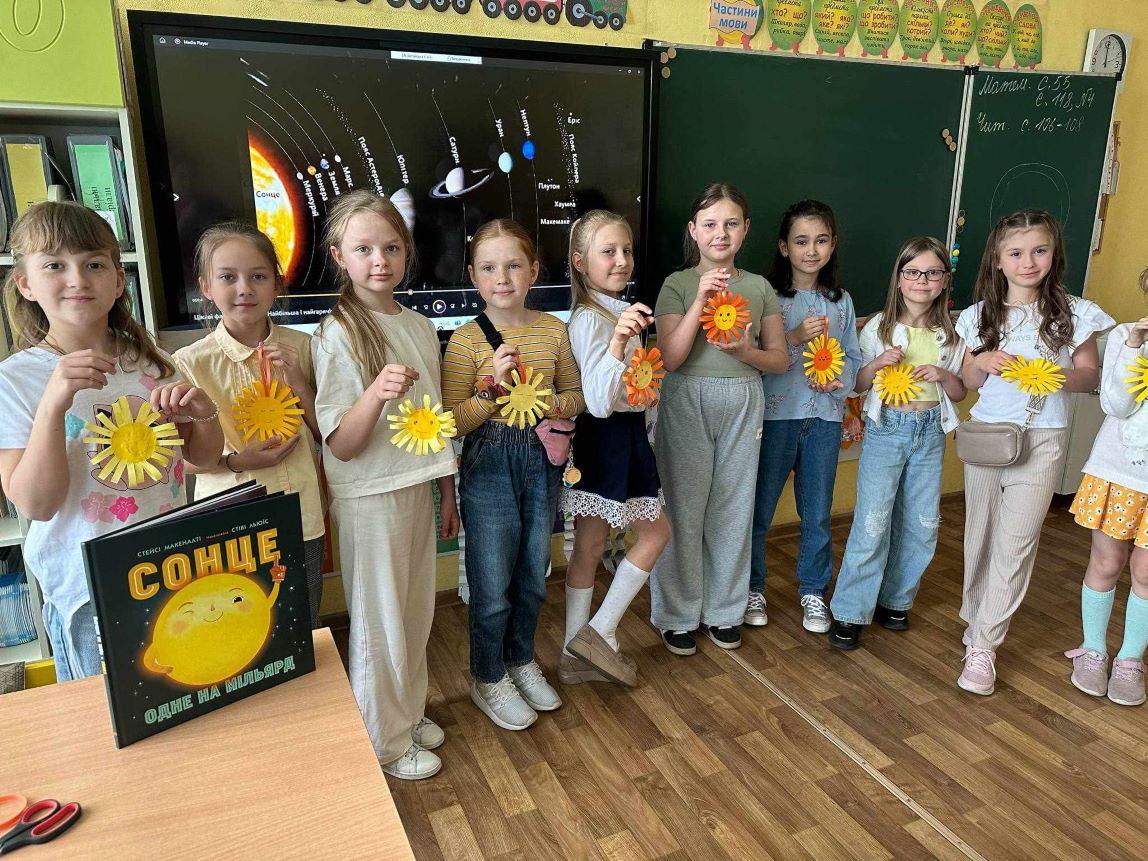 З метою популяризації знань про Сонце, про його роль в екосистемі Землі та необхідності використання сонячної енергії, бібліотекарка Оксана Олексіївна завітала до третьокласників  Спеціалізованої школи № 82 ім Т.Г Шевченка та провела для них пізнавальну інформаційну годину «Сонце: одне на мільярд».