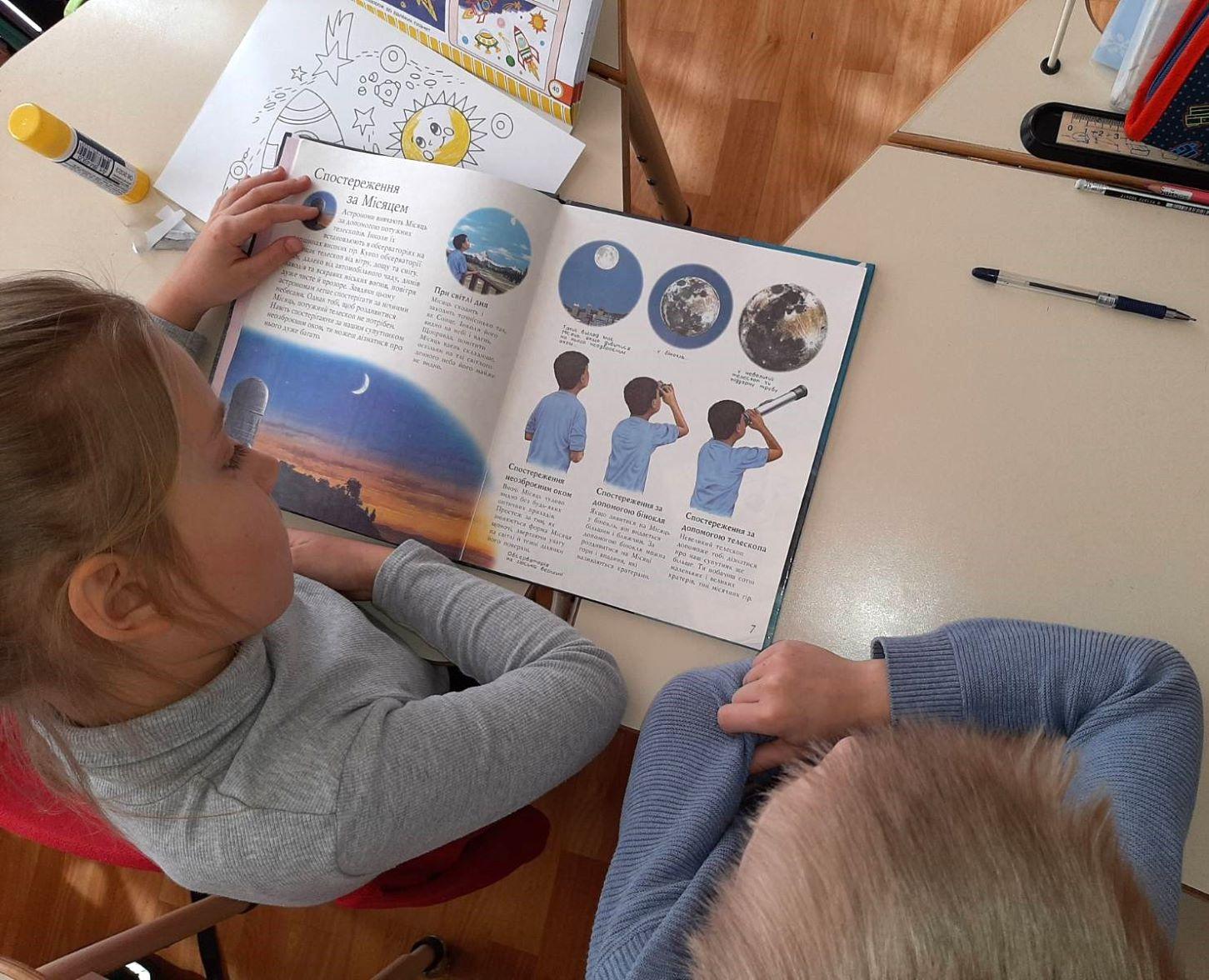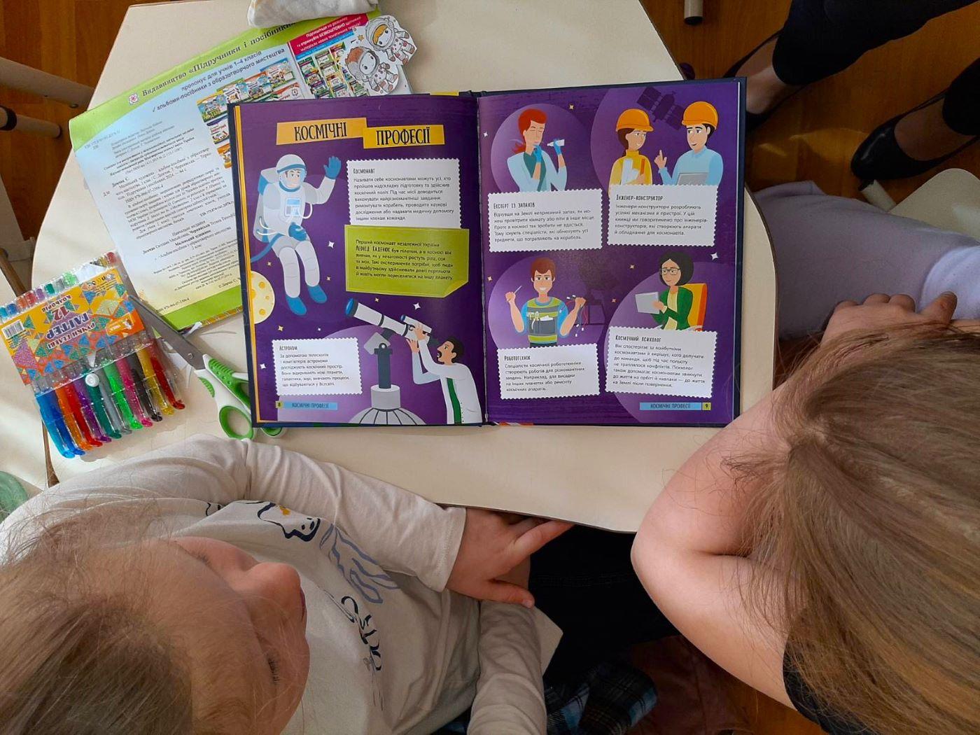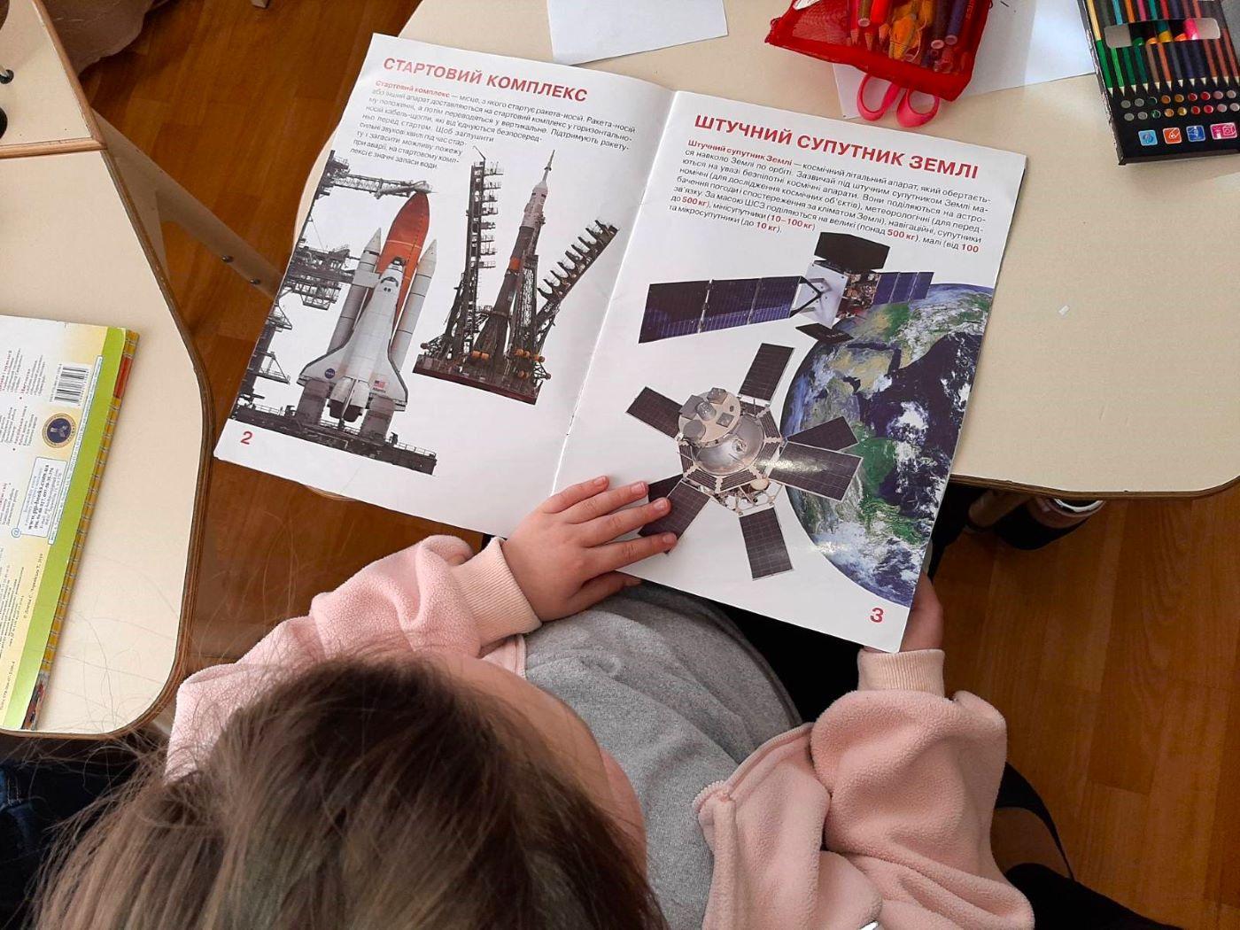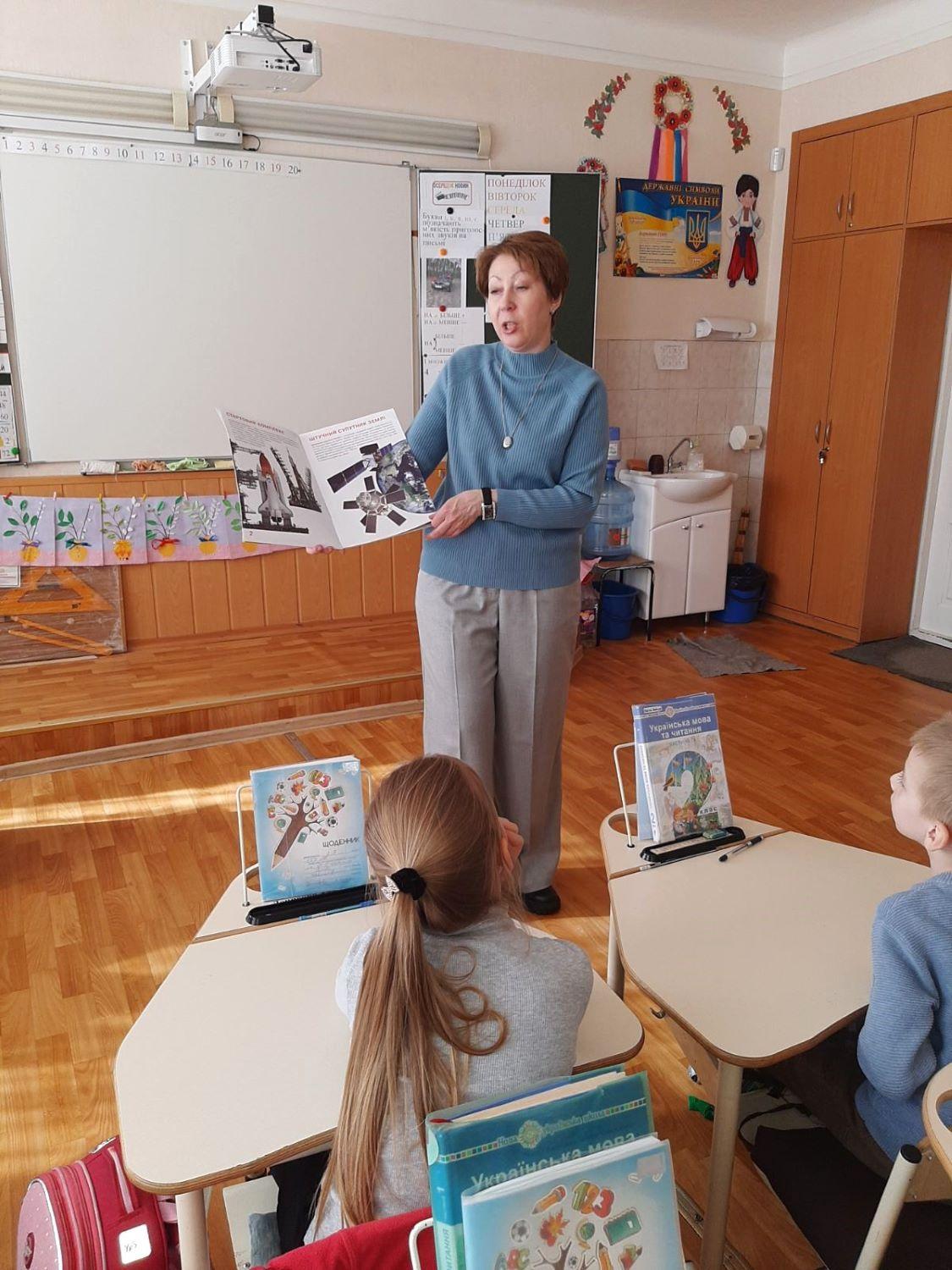 Бібліотекарка розповіла учням деякі захоплюючі факти про космос: про перший в світі політ людини та про першого українського космонавта Леоніда Каденюка, про те, яка складна підготовка та організація здійснюється, аби відбувся один такий політ. У дітей виникло безліч запитань, здавалося б, без фахівця не обійтись, але бібліотекарка принесла багато пізнавальних книжок, які цілком задовольнили питайликів та розкрили перед ними безмежні таємниці Всесвіту. Бо це така цікава тема – що просто Космос!