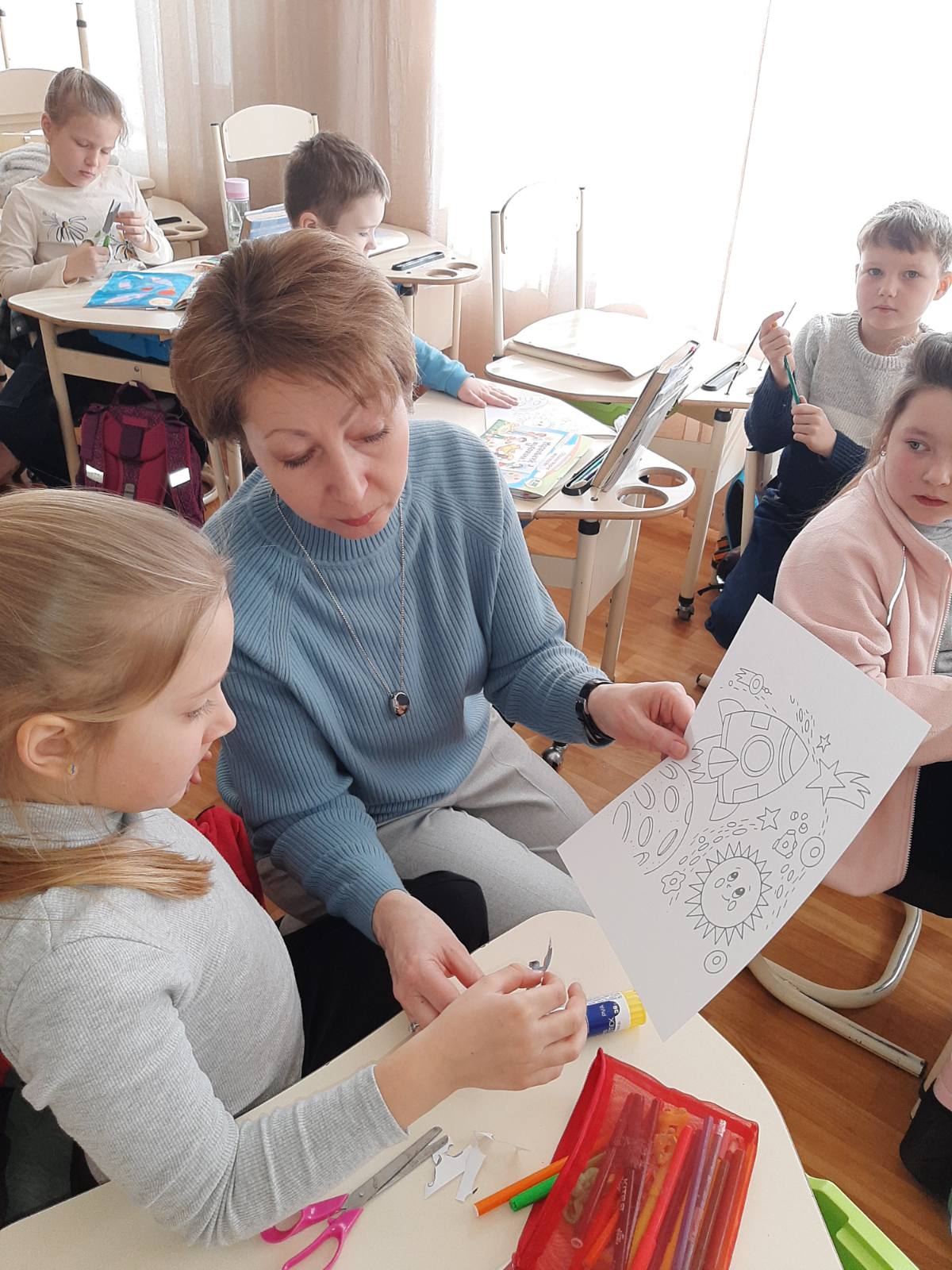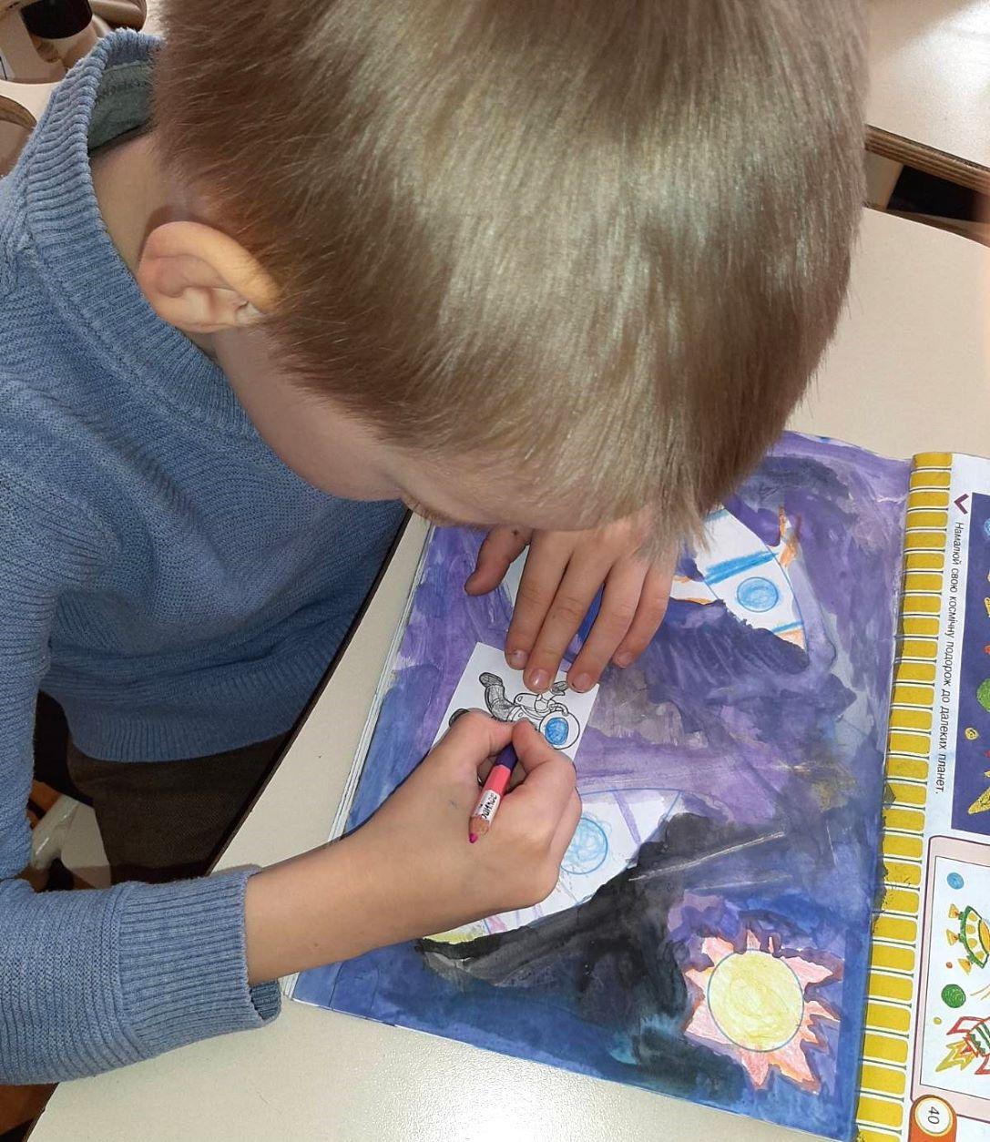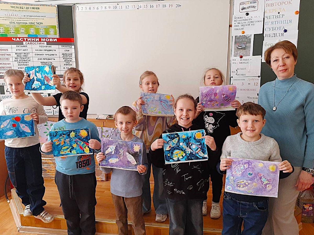 Допитливі школярі теж були готові до цієї зустрічі – намалювали загадкові космічні простори. Як дитина може уявити собі космос? 🛰 Фантастично!🪐