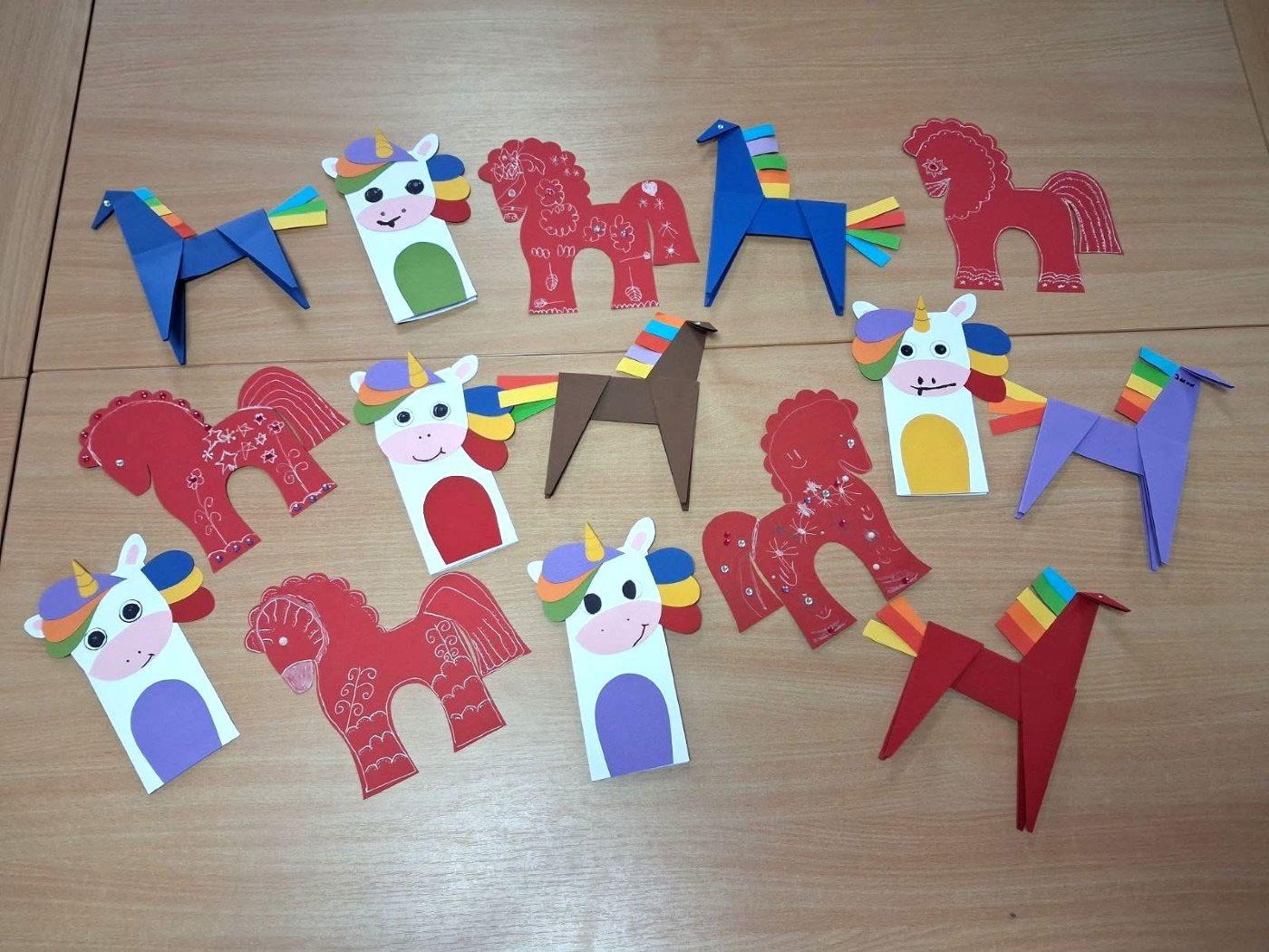 Не менш цікавим завданням для дітей стало виготовлення коника з кольорового паперу, який може слугувати чудовим елементом декору у кімнаті, наприклад – прикрасити книжкову полицю.