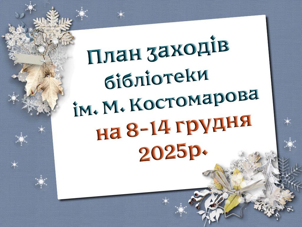 План заходів бібліотеки ім. М. Костомарова на період з 8 по 14 грудня 2025 р.