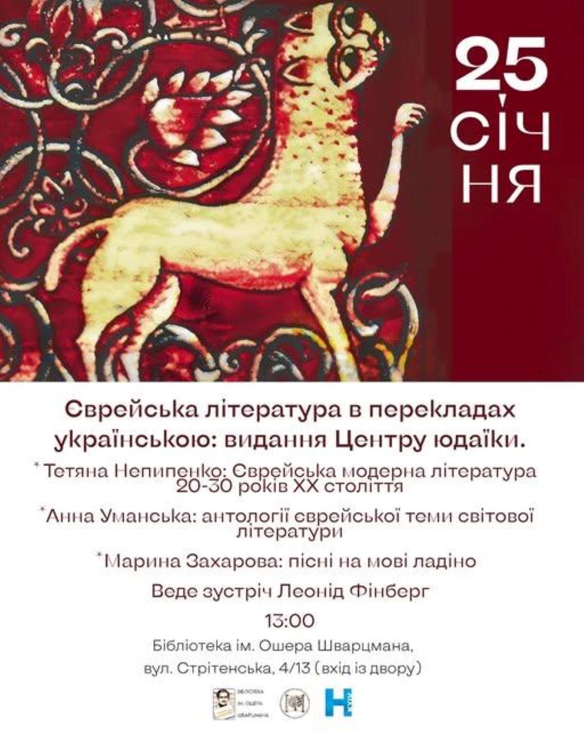 Бібліотека імені Ошера Шварцмана запрошує на чергову зустріч культурно-просвітницької програми «Юдаїка в Україні» Центру досліджень історії та культури східноєвропейського єврейства.