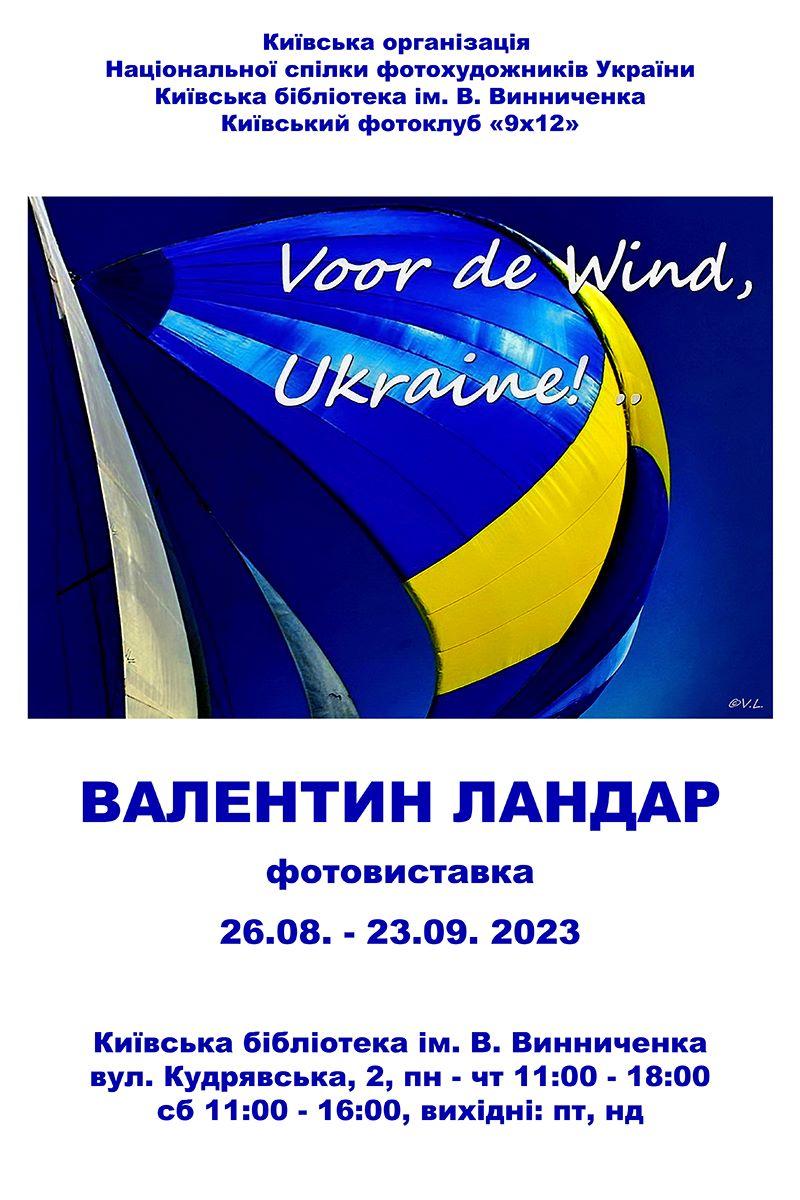 До Дня Незалежності України бібліотека ім. Володимира Винниченка презентує персональну виставку фотохудожника – члена НСФХУ, фотожурналіста – члена НСЖУ Валентина Ландара (м. Київ) «Voor de Wind, Ukraine!»