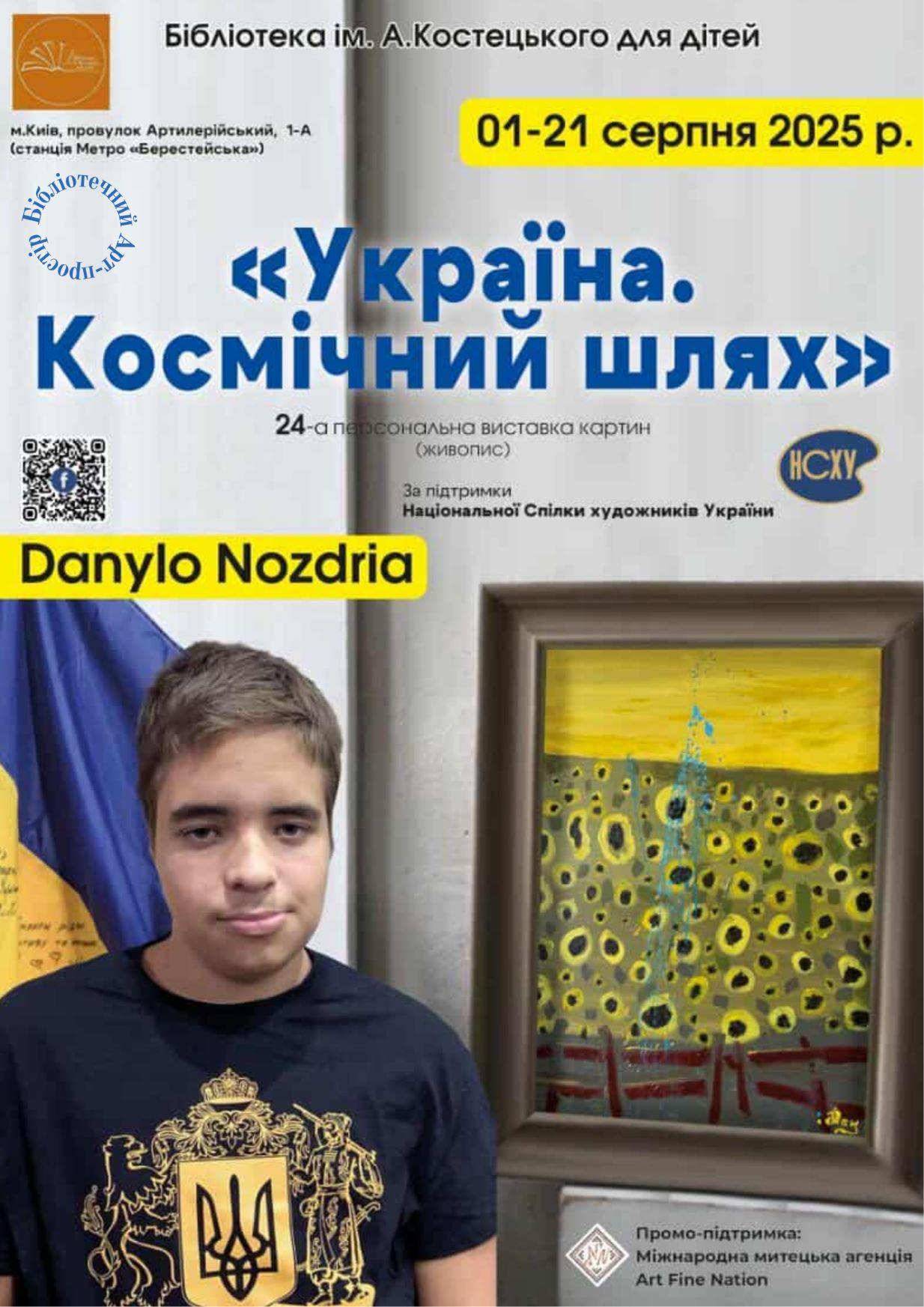 на відкриття виставки картин юного художника Данила Ноздрі «Україна. Космічний шлях».
