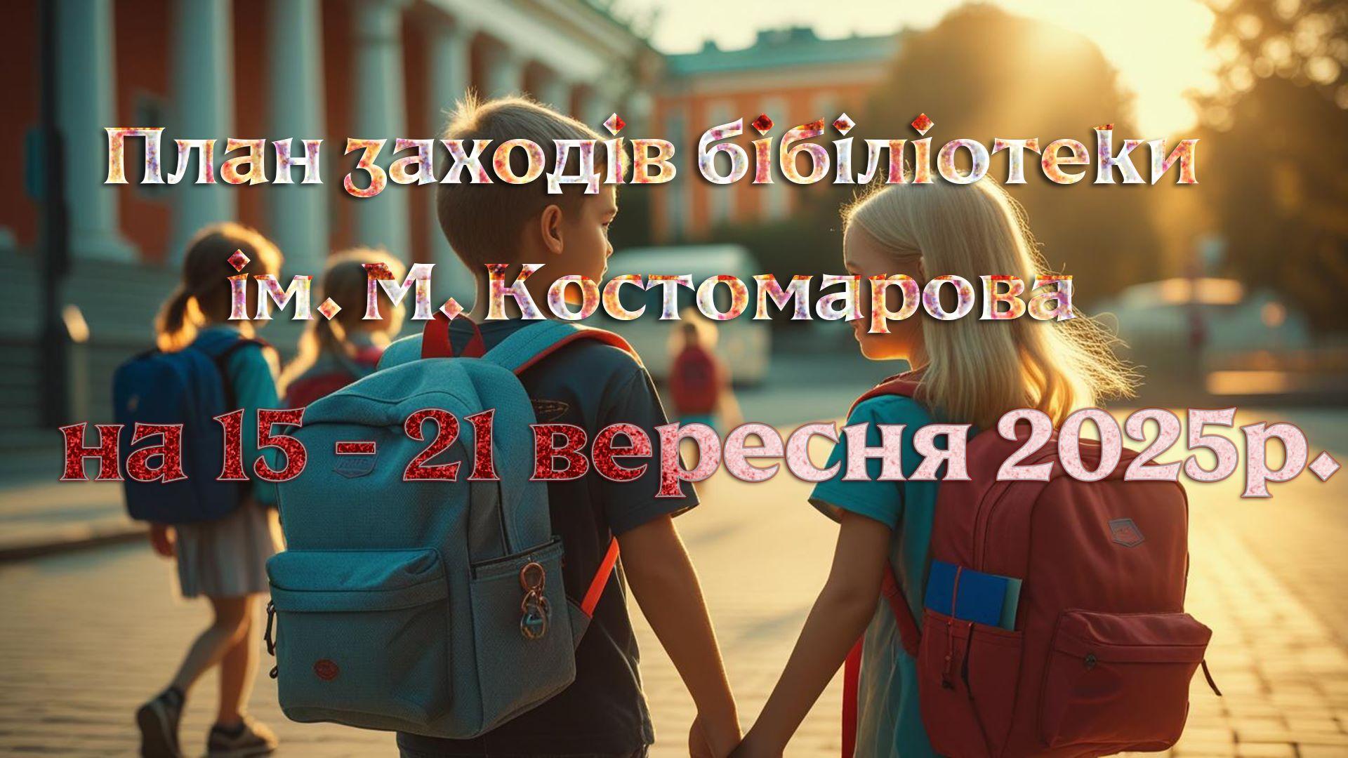 Category: General План заходів бібліотеки ім. М. Костомарова на період з 15 по 21 вересня 2025 р.