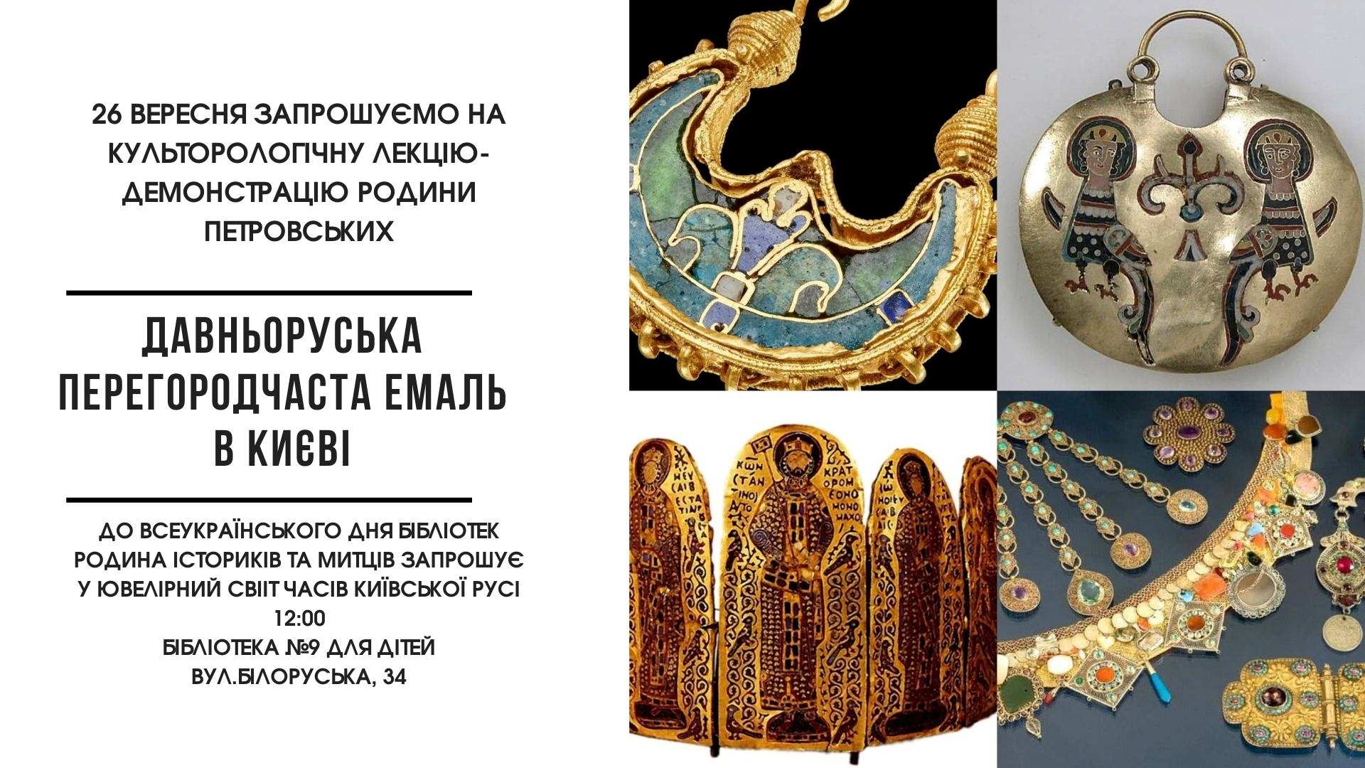 Бібліотека №9 для дітей запрошує на культорологічну лекцію «Давньоруська перегородчаста емаль в Києві» з циклу «Історії унікальних технологій» від родини Петровських.