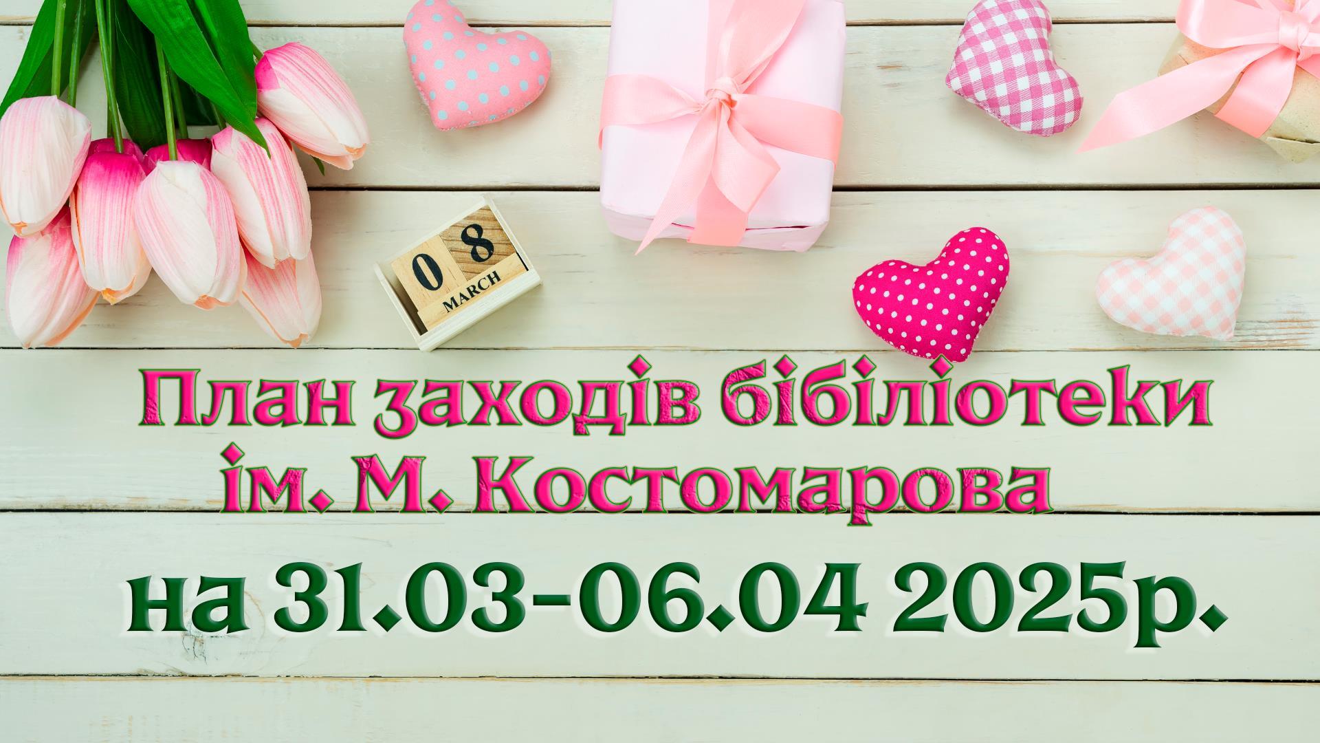 План заходів бібліотеки ім. М. Костомарова на період з 31.03 по 06.04 2025 р.