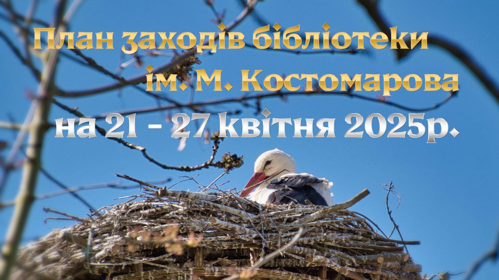 План заходів бібліотеки ім. М. Костомарова на період з 21 по 27 квітня 2025 р.