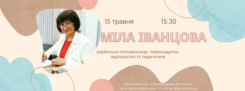 Запрошуємо на творчу зустріч з українською письменницею Мілою Іванцовою.
