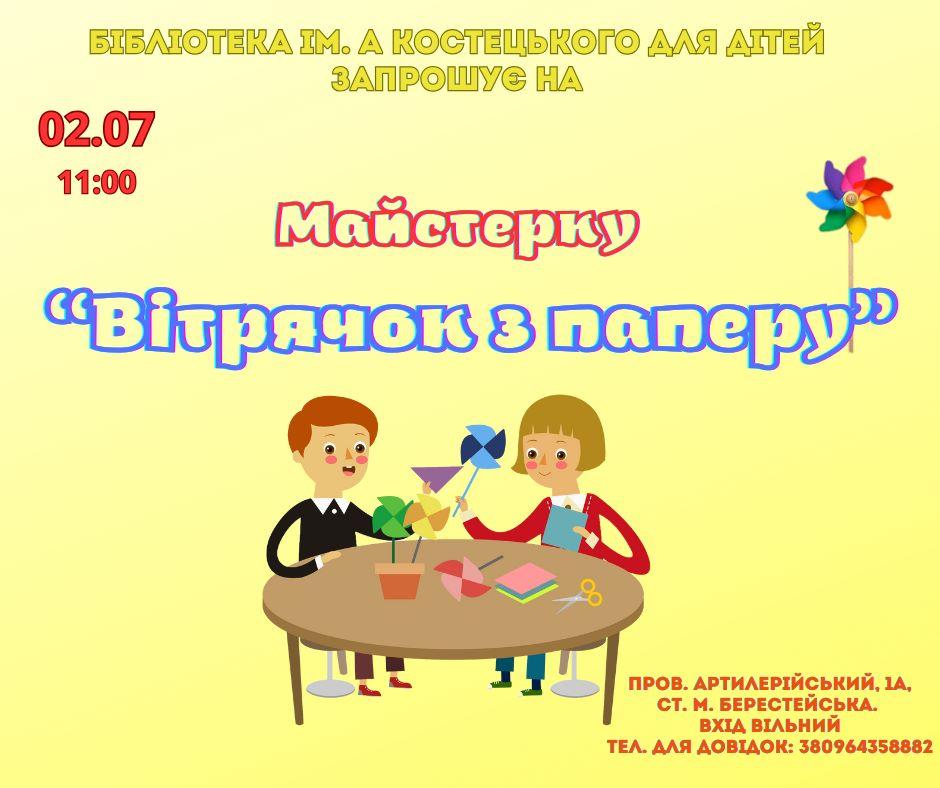 Майстерка «Вітрячок з паперу» в бібліотеці ім. А. Костецького для дітей