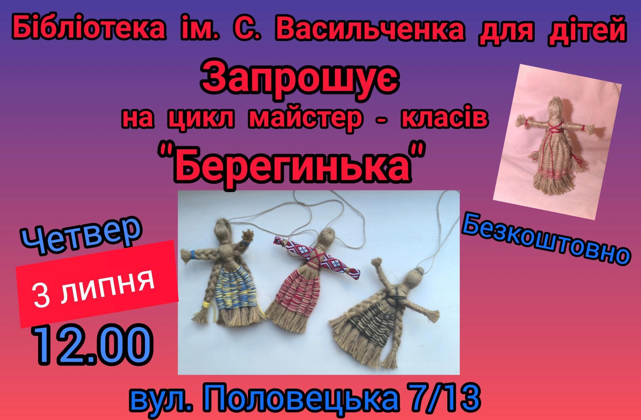 Майстер – клас «Берегинька» 3 липня в бібліотеці ім. С. Васильченка для дітей