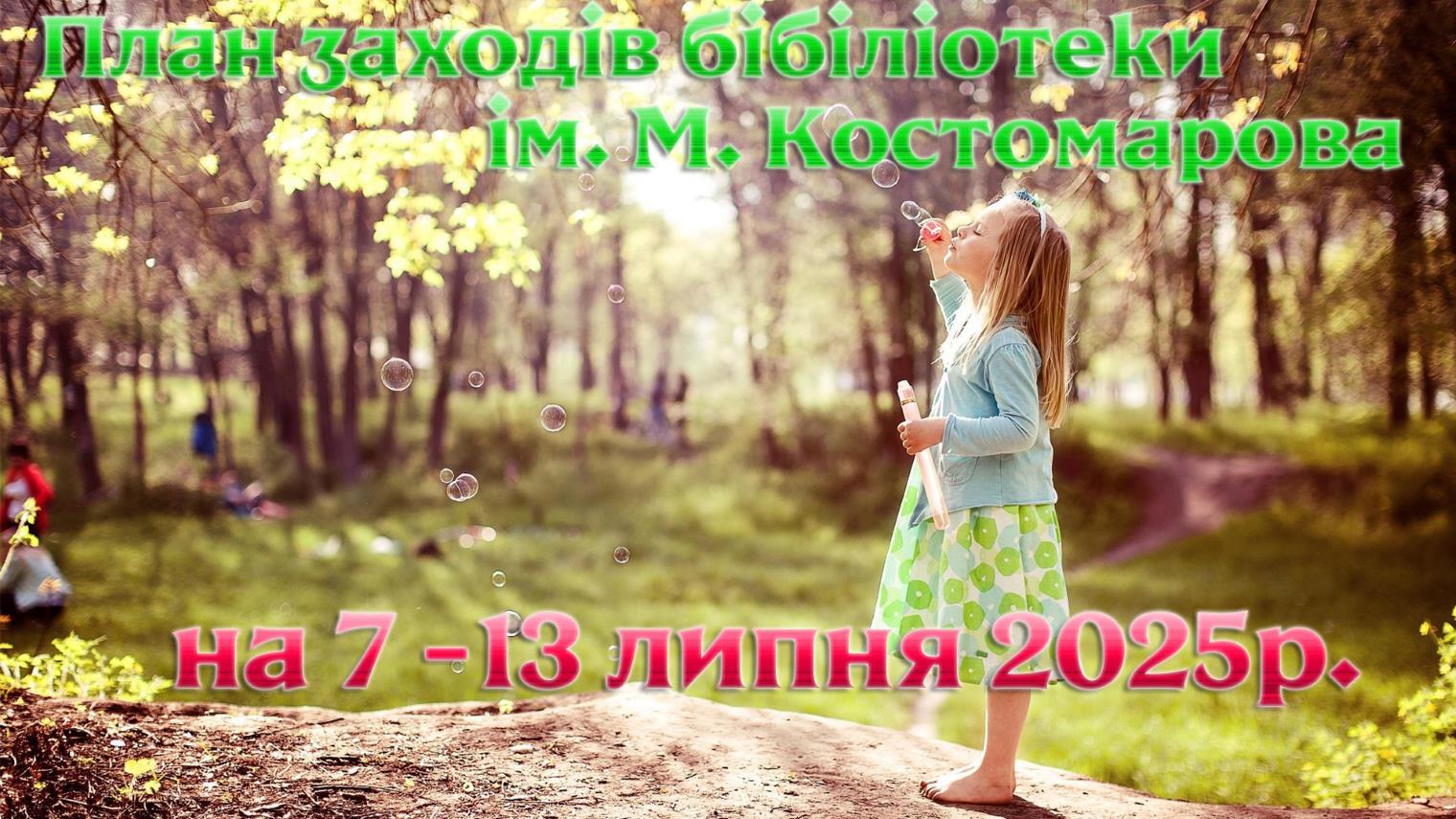 План заходів бібліотеки ім. М. Костомарова на період з 7 по 13 липня 2025 р.