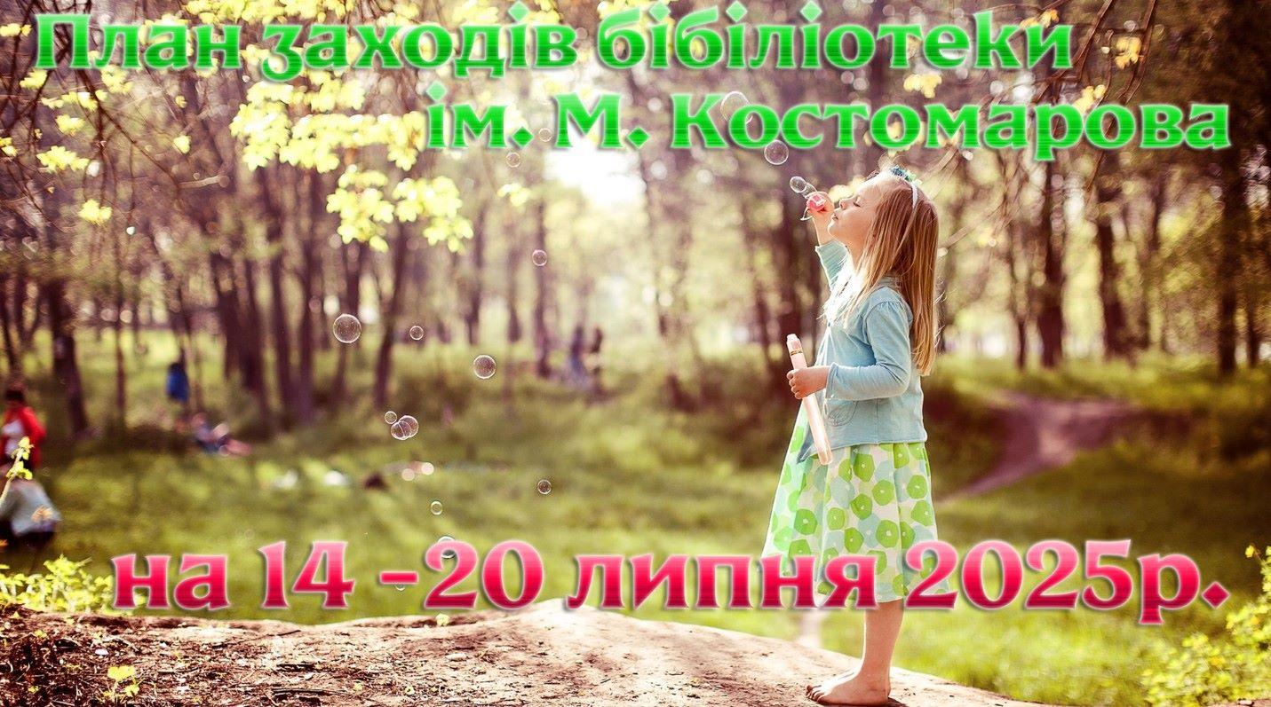 План заходів бібліотеки ім. М. Костомарова на період з 14 по 20 липня 2025 р.