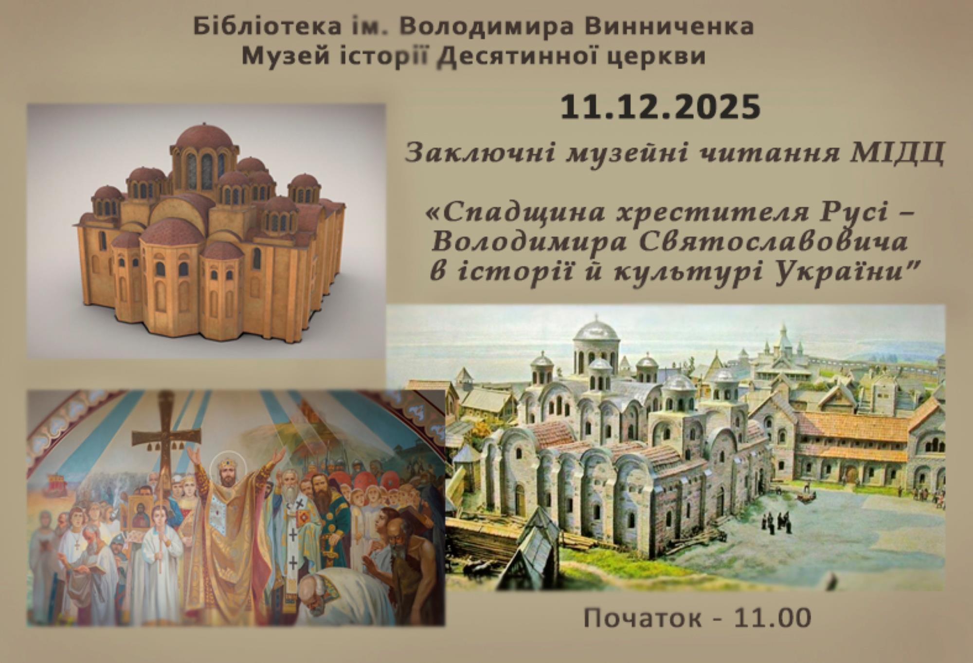 Бібліотека імені Володимира Винниченка та Музей історії Десятинної церкви запрошує на Музейні читання.