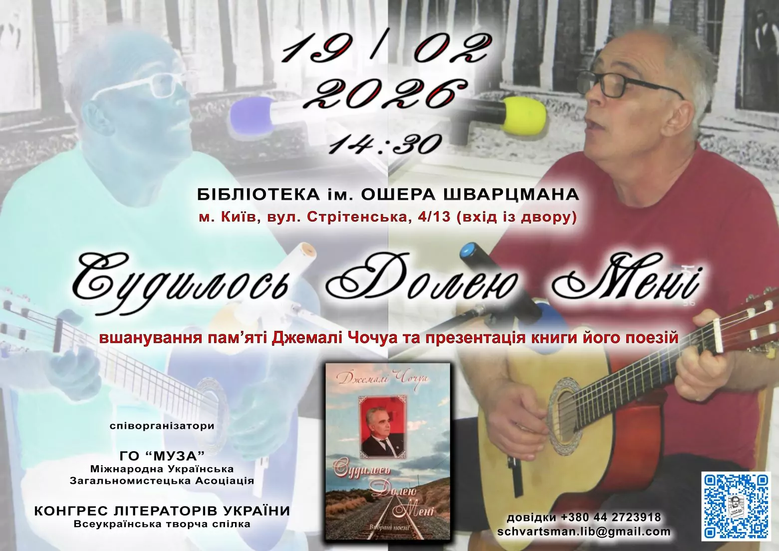 19 лютого бібліотека ім. Ошера Шварцмана разом з ГО «МУЗА» (Міжнародною Українською Загальномистецькою Асоціацією) та Всеукраїнською творчою спілкою «Конгрес літераторів України» запрошують вшанувати пам’ять українського грузинського поета, співзасновника ГО «МУЗА», члена ВТС КЛУ Джемалі Чочуа (1960-2025).
