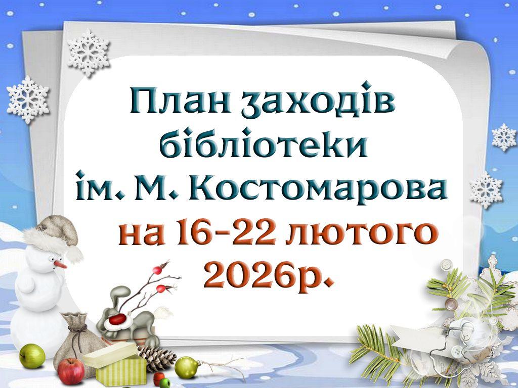 План заходів бібліотеки ім. М. Костомарова на період з 16 по 22 лютого 2026 р.