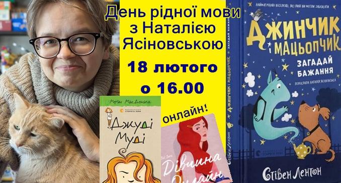 18 лютого о 16.00 бібліотека ім. С. Васильченка для дітей запрошує на ефір із письменницею та перекладачкою Наталією Ясіновською.