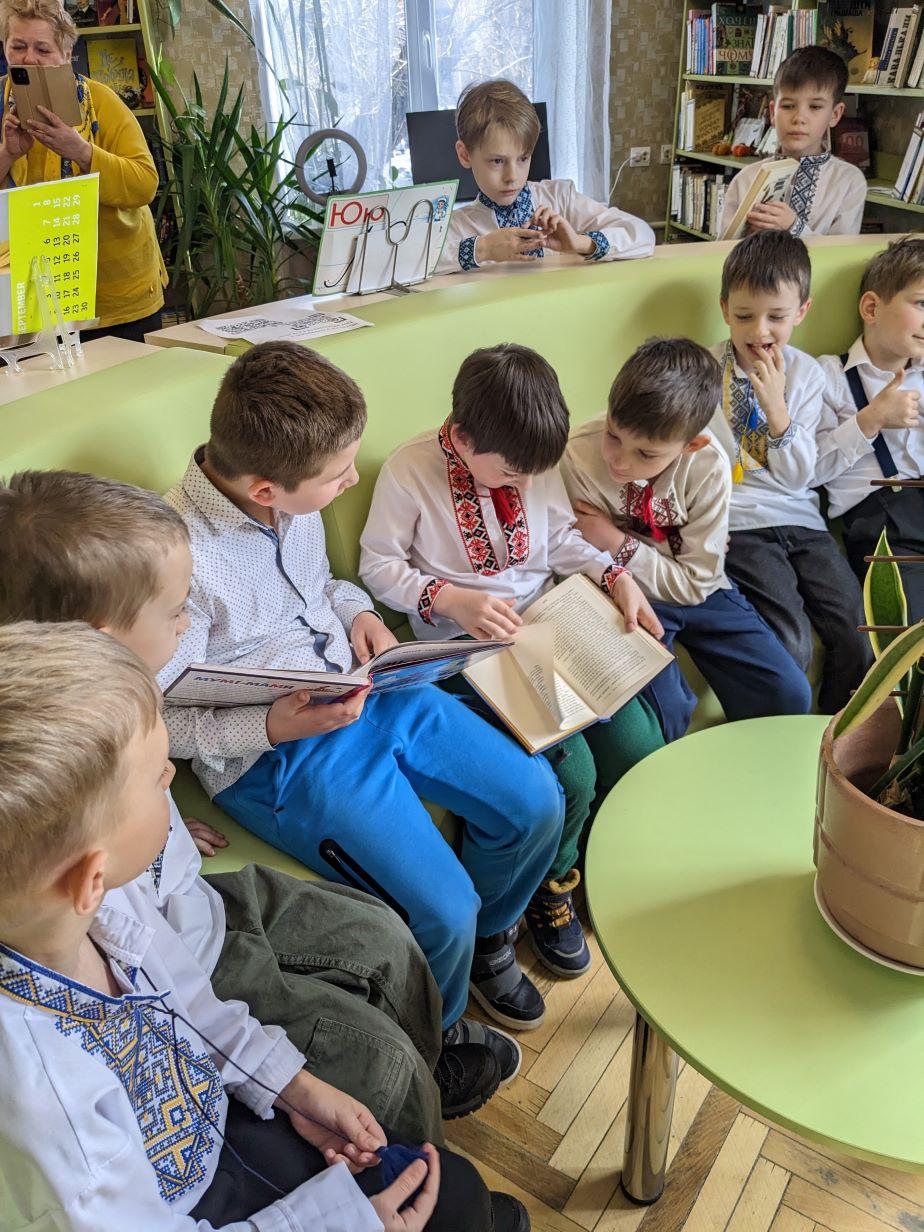 Наші читці Шевченка. Як вони стараються! А ми олюднюємо Тараса, показуємо його такою ж дитиною, з мріями та бажанням гратися. З бешкетом і наполегливістю, з талантом бачити красу. Бо і дорослому важко полюбити когось високочолого на п’єдесталі слави. Ми любимо тих, хто нам близький, чий шлях ми можемо бодай частково приміряти на себе, а дітям близькі діти. Тому сьогодні окрім розмови про Тараса (щоразу тішимося як багато діти знають про нього і його час), окрім читання віршів ( у нас це за бажанням гостей), ми ще й провели екскурсію бібліотекою, бо…