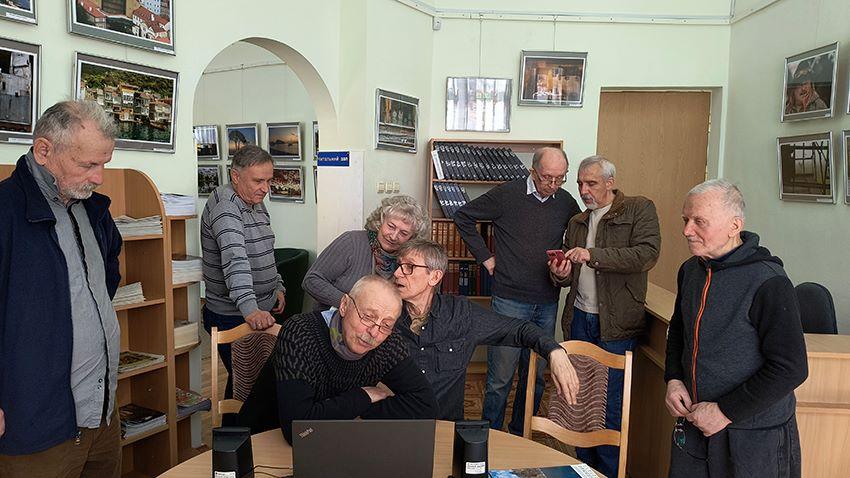 В суботу 4 квітня в бібліотеці ім. Володимира Винниченка відбулась творча зустріч з автором фотовиставки «Озираючись…», київським фотомайстром Ігорем Сіренком. До нас завітали колишні студенти КНУ ім. Т.Шевченка, учасники тодішньої університетської театральної студії.