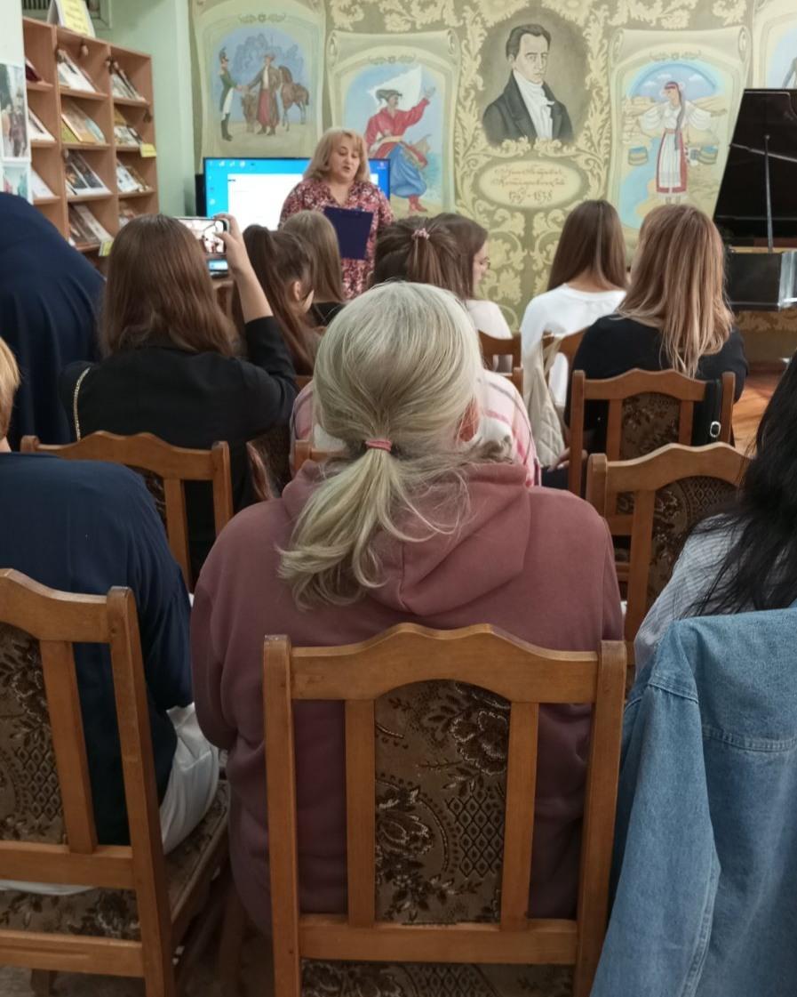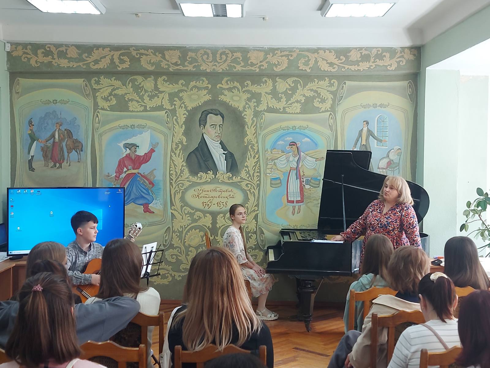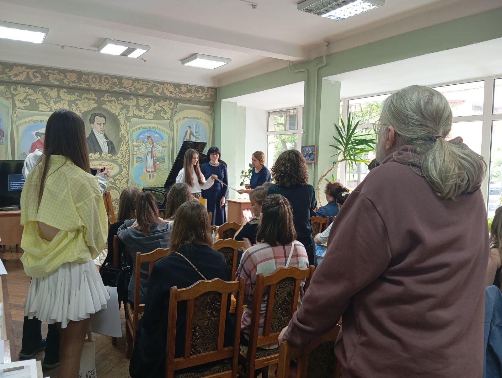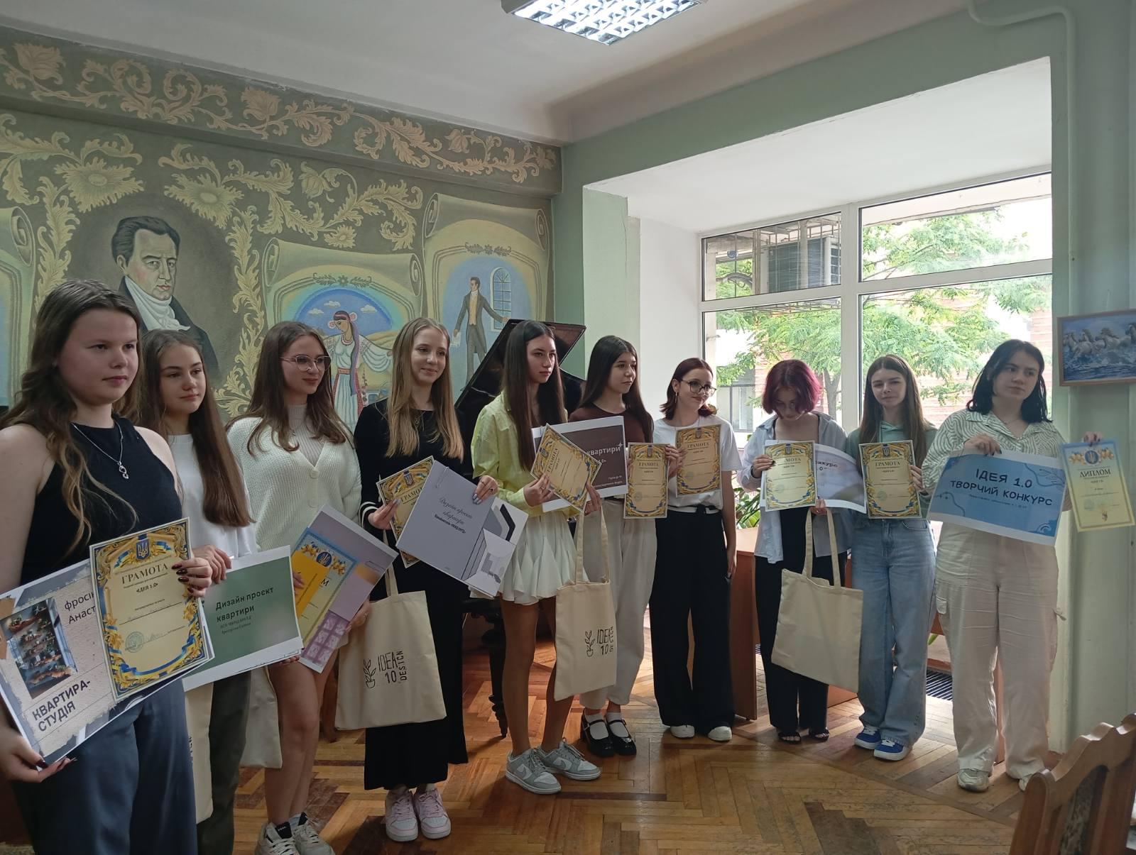 Днями в читальній залі нашої бібліотеки в межах спільного проєкту бібліотеки ім.і Івана Котляревського та ВСП ФКМД КНУДТ «Мистецтво молодих митців» пройшов фінальний тур творчого конкурсу «Ідея 1.0» для студентів-першокурсників Фахового коледжу мистецтв та дизайну КНУТД, що навчаються за спеціальністю Дизайн інтер’єру. На конкурс були представлені проєкти дизайну 1-кімнатної квартири 54 кв. м у вигляді відеопрезентацій, креслень, скетчів. Всі присутні змогли оцінити роботи талановитих студентів, які тільки починають свій творчий шлях. Після представлення та захисту проєктів журі конкурсу оголосило півгодинну перерву, щоб порадитися, а тим часом, аби відвідувачі не сумували, а конкурсанти не нервували, ми заповнили паузу невеличким музичним перформансом.