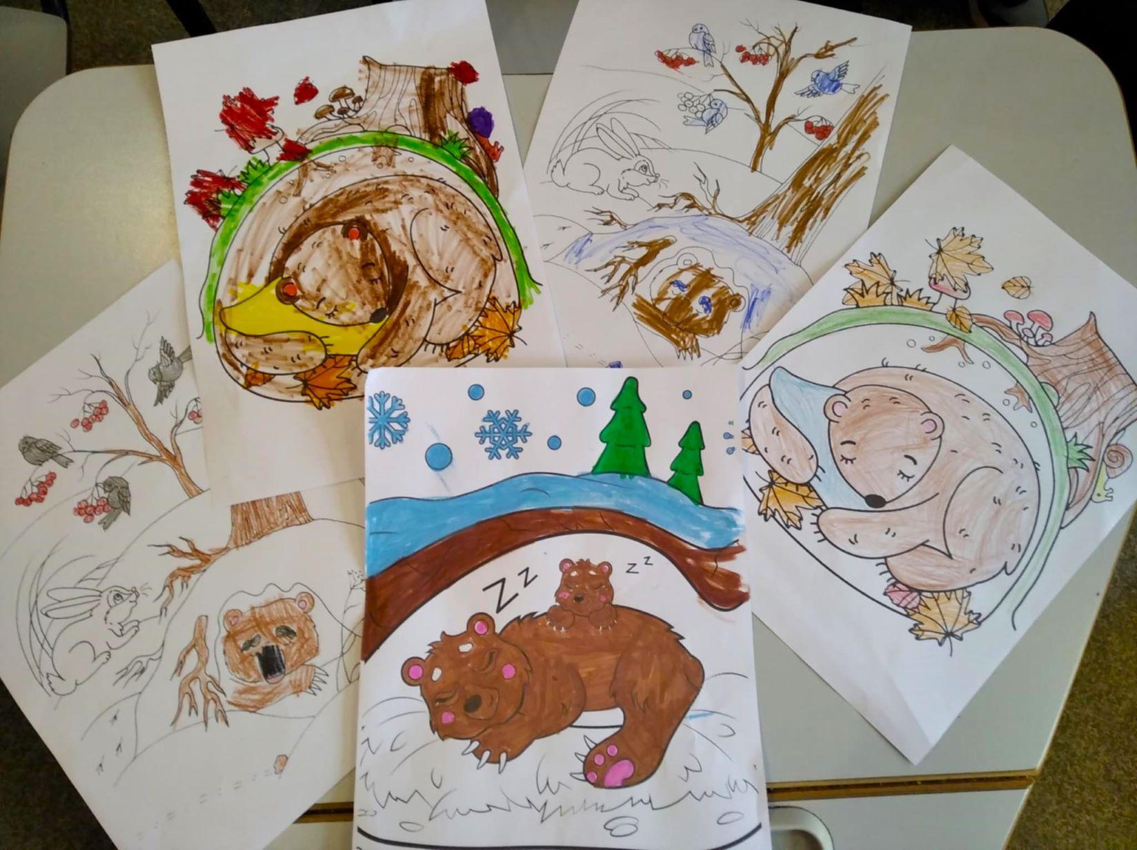 Тепер батьки, які стомилися відповідати на нескінченні запитання своїх чад, отримають маленький перепочинок. Тому що діти дізналися так багато про зимові зміни в природі та про те як яка тварина і де зимою живе, що самі тепер зможуть просвітити батьків. Дітям цікаво знати про все! Тварини зимують по-різному: одні впадають у сплячку (ведмеді, їжаки, борсуки), інші роблять запаси їжі і залишаються активними (білки, миші), треті мігрують у теплі краї (птахи), а комахи ховаються, хто де зможе. Тож набуті нові знання першачки завзято реалізували у творчості.