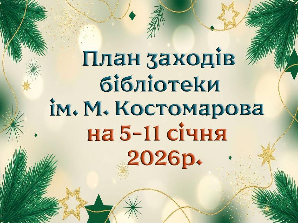 Бібліотека ім. М. Костомарова запрошує завітати на заходи, які відбудуться в стінах книгозбірні з 5 по 11 січня 2026р.