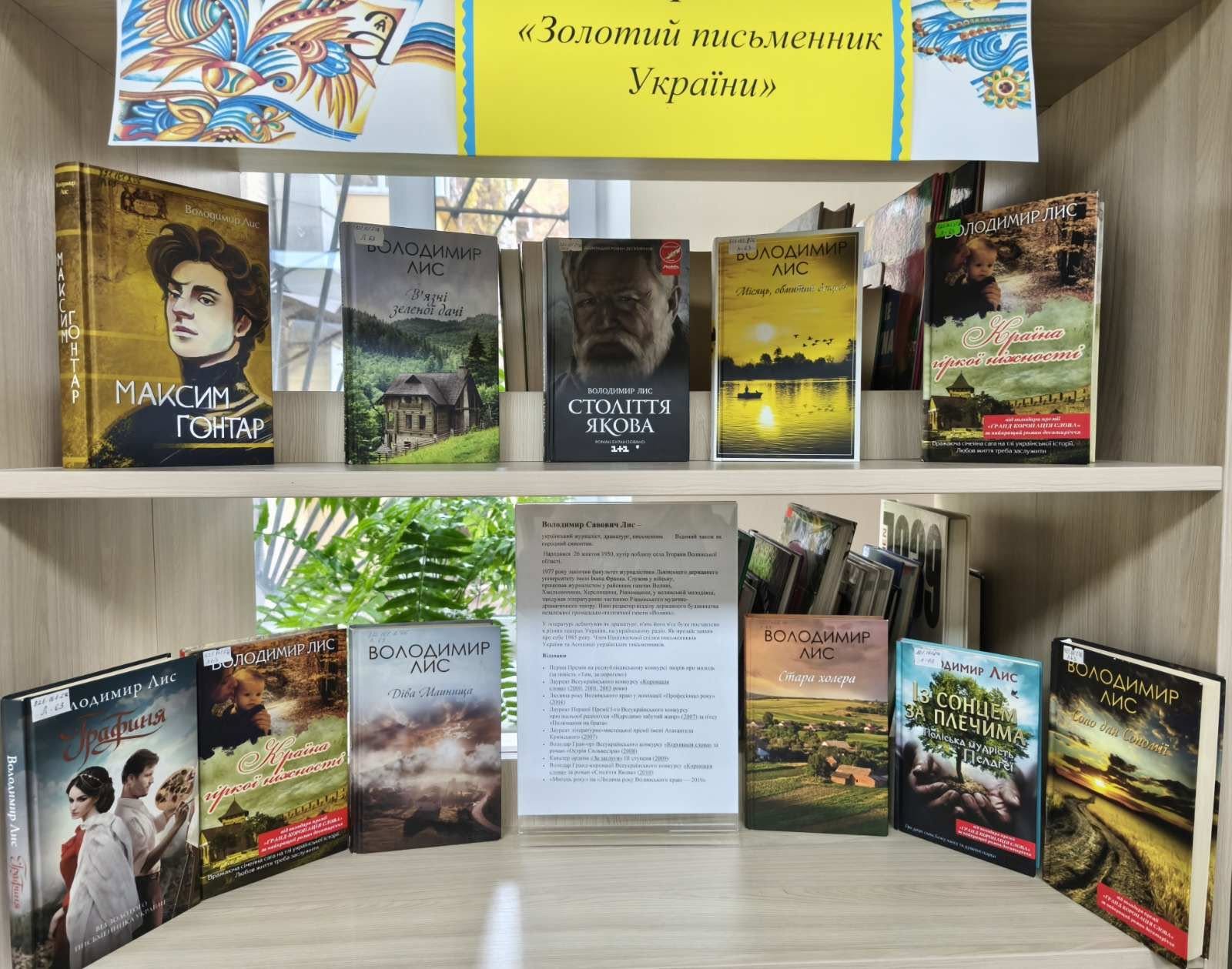 Книжкова виставка «Володимир Лис. «Золотий письменник України» знайомить наших читачів з творчім доробком письменника різних жанрів: